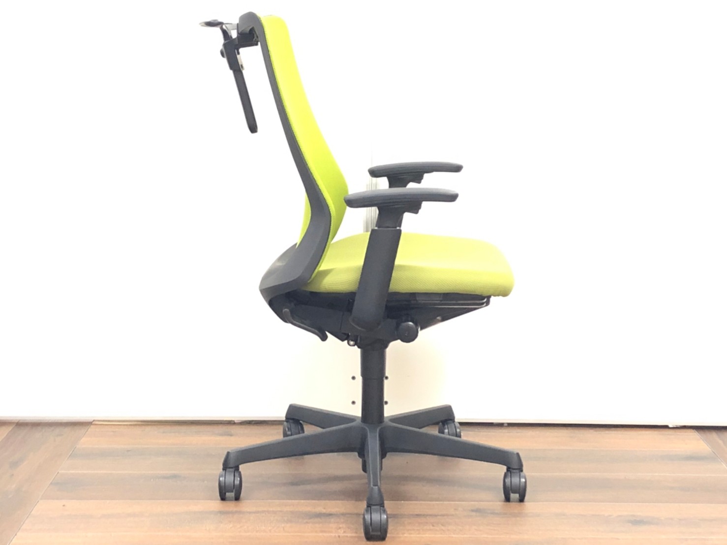 【腰まわりをしっかりホールド!長時間作業も快適フィット!】■オカムラ(okamura)製 フルーエントチェア(Fluent) 肘付ハイバック ■グリーン×ブラックシェル ■背面メッシュ ■可動肘 ■ハンガー付