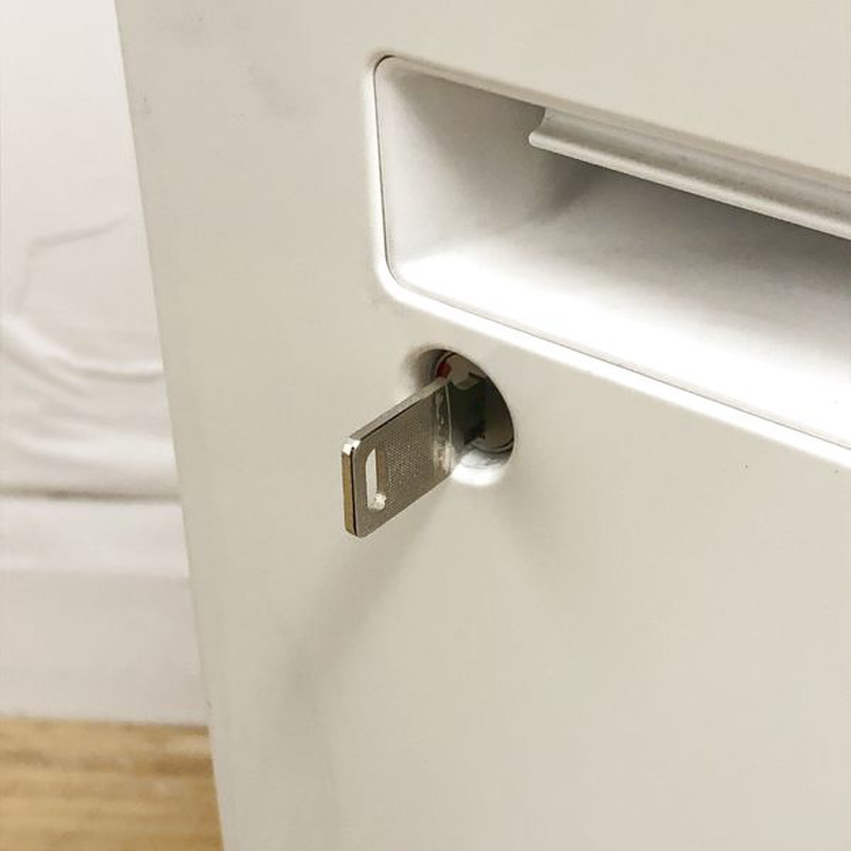 【正面に取っ手が無いフラットなデザイン!キャスター付でレイアウト変更がスムーズ!】■オカムラ(okamura)製 プロユニットシリーズ 3段ワゴン フリアド用ワゴン H650㎜ ■ホワイト ■シリンダー錠 ※キズ・塗装剝がれ有
