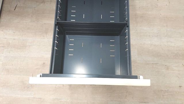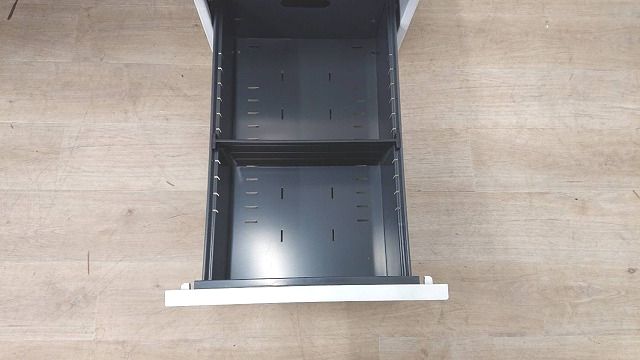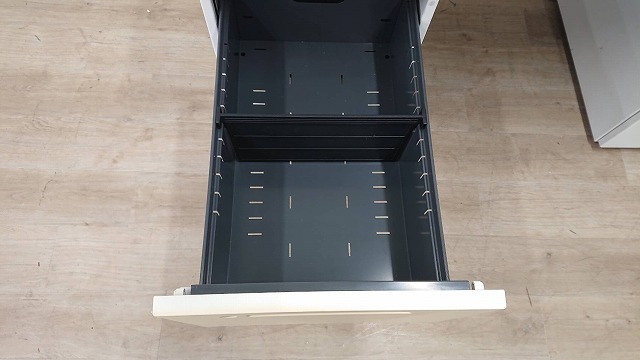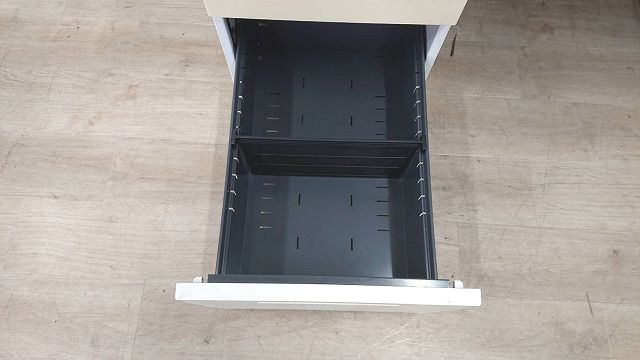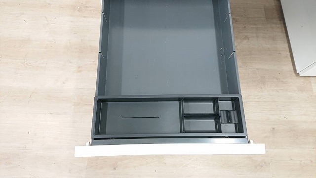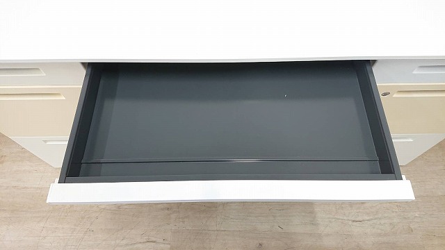 - 地震時、センター引出しが飛び出さないよう、ラッチ機構を装備。脚はデスクの横ズレを軽減させる設計になっています。