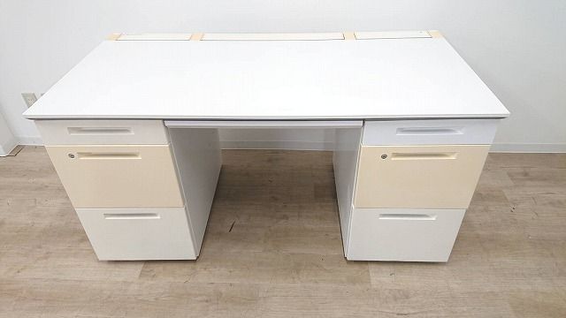 コクヨのIS両袖机入荷!中古 両袖 机 事務机 オフィス ホワイト デスク W1400×D700×H720 KOKUYO IS スタンダードデスク オフィスバスターズ 外部倉庫在庫