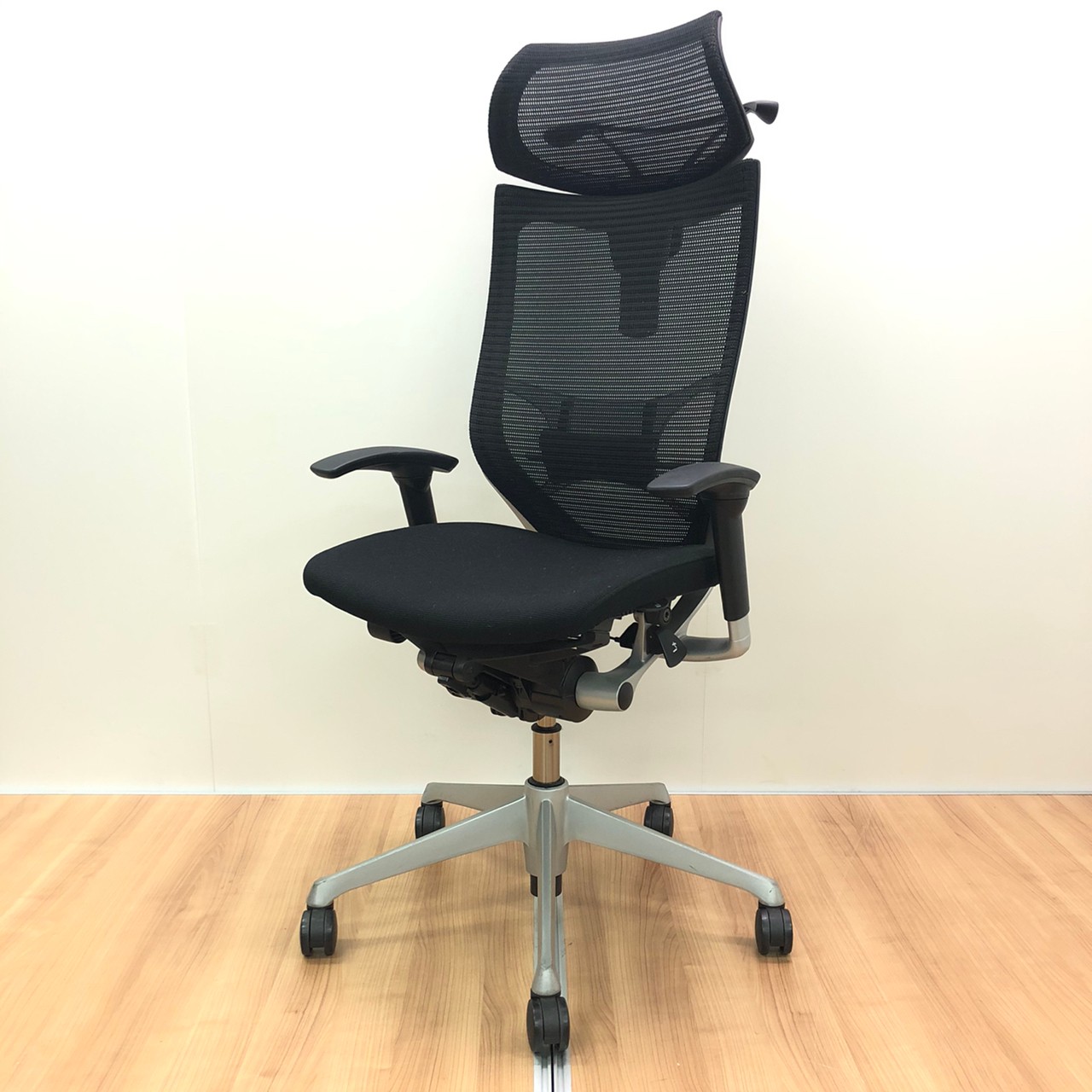 【長時間の着座でも疲れにくい!ベストなポジションが得られる先進設計!】■オカムラ バロンチェア 肘付 ブラック ハイバック シルバーフレーム ■良い椅子は腰を守る投資です!【Okamura Baron】