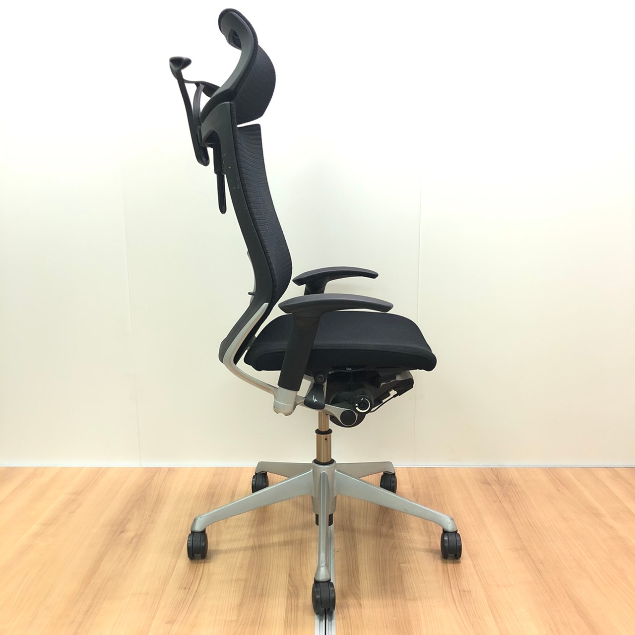 気に入っているのはリクライニング調整の自由さです。同じオカムラ社製の上位モデルや下位モデルも、角度が5段階程度の固定位置だったり、リクライニング強度も4段階だったりしますが、バロンチェアはどちらも無段階。つまり完全に好きな位置、好きな強度に調整することができます。