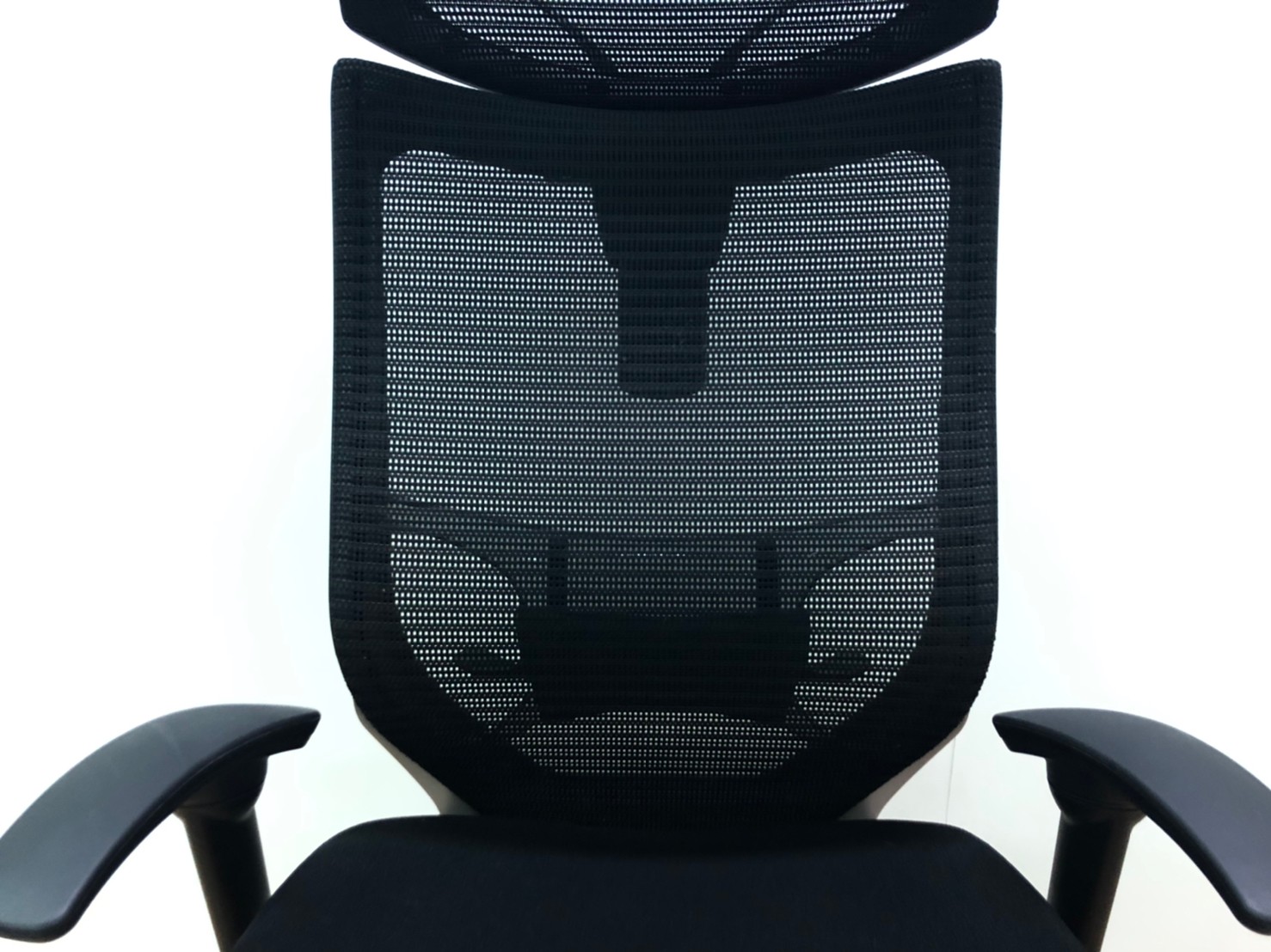 【オフィスの執務室、会議室におすすめ!】■オカムラ(okamura)製 バロン(Baron)チェア 肘付き ハイバック ■背・座面メッシュ ■可動肘 ■ヘッドレスト付き ■ブラック【硬めの座面が大人気!国産メッシュチェアの代表格!】