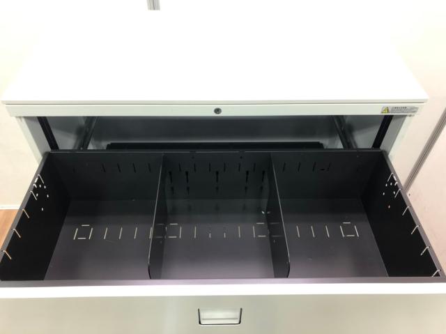 【オフィスの必需品!大容量の三段キャビネット!】■オカムラ(okamura)製 レクトラインシリーズ 3段ラテラル ローキャビネット ■天板/ベース付 ■シリンダー錠 ■ホワイト 【弊社使用欄:A01037187】