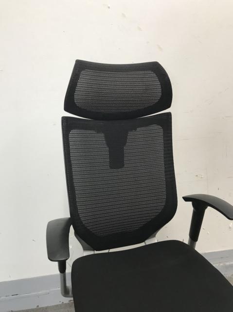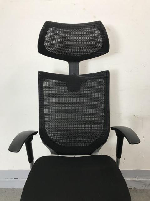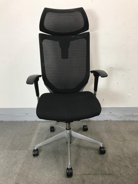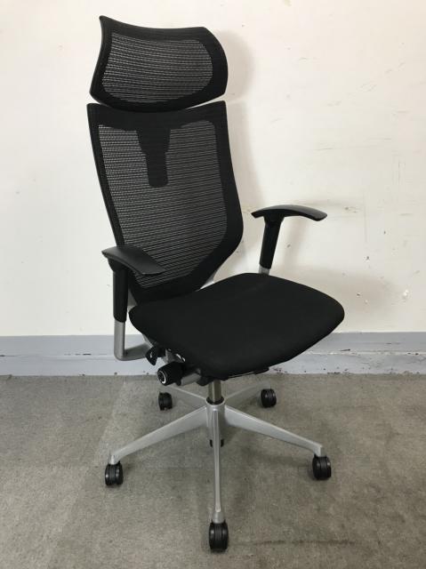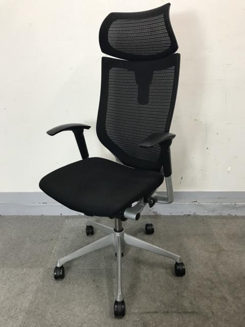 【オフィスの執務室、会議室におすすめ!】■オカムラ(okamura)製 バロン(Baron)チェア 肘付き ハイバック ■背・座面メッシュ ■可動肘 ■ヘッドレスト付き ■ブラック【硬めの座面が大人気!国産メッシュチェアの代表格!】