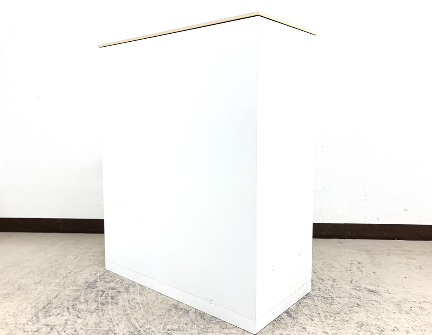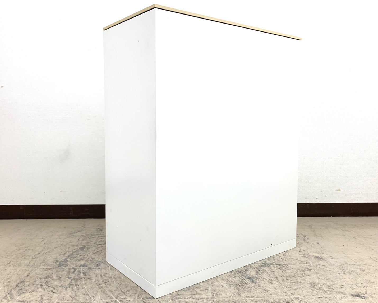 【オフィスの書類をスッキリ整理! 扉の無いタイプなので資料探しがラクラク!】■オカムラ(okamura)製 レクトライン(Rectline)シリーズ オープン書庫 ローキャビネット ■色:ホワイト ※扉外し商品のため外し跡がございます。