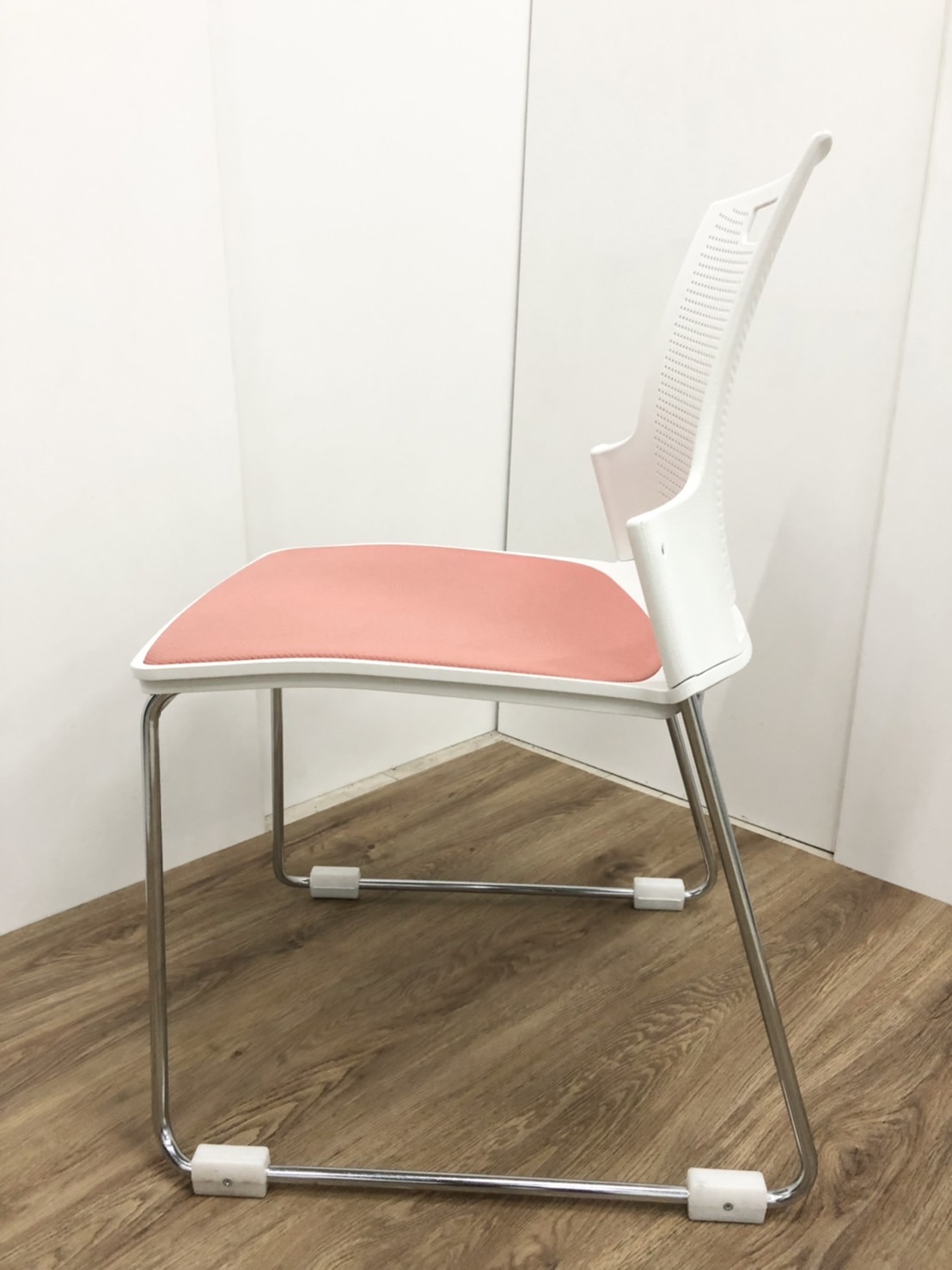 【KS】【軽快なデザイン!】■オカムラ製 スタッキングチェア スカラールフト ピーチ ホワイトシェル- 茨城南店