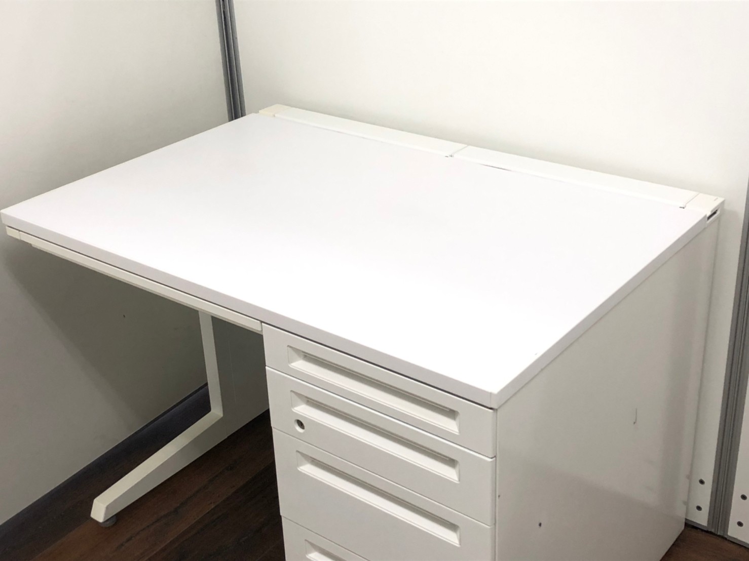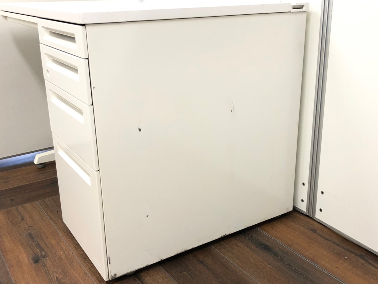 【T11】【商品入替のため、残り6台限り】オカムラ製 アドバンシシリーズ ホワイトカラー 4段収納で整理も完璧! コンパクトで清潔感のあるオフィス W1000片袖机!!