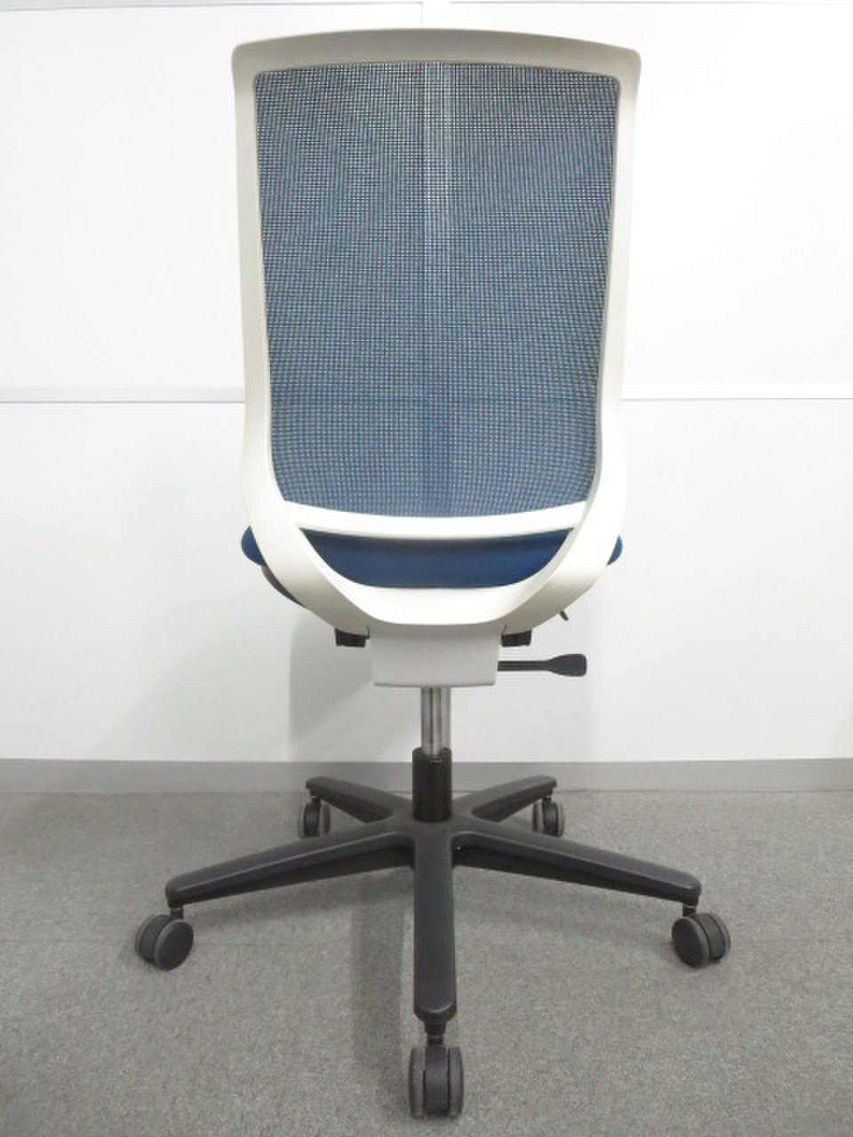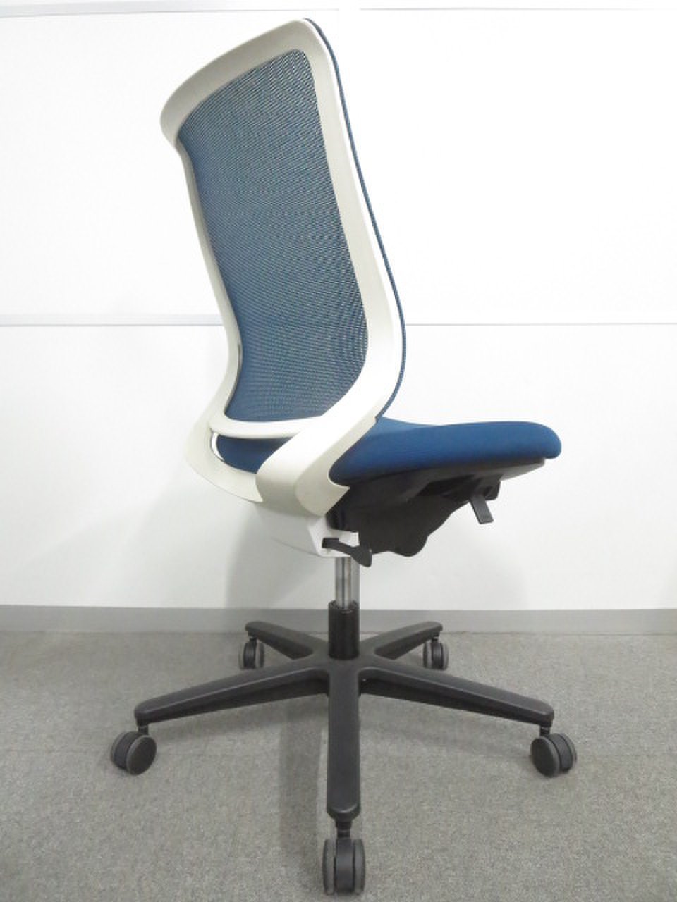 ★【商品入替のため、残り1脚限り】コクヨ製 ミトラシリーズ ターコイズブルー×ホワイトフレーム メッシュ背面 ランバーサポート付 快適な座り心地と充実機能 肘無しローバックチェア!!