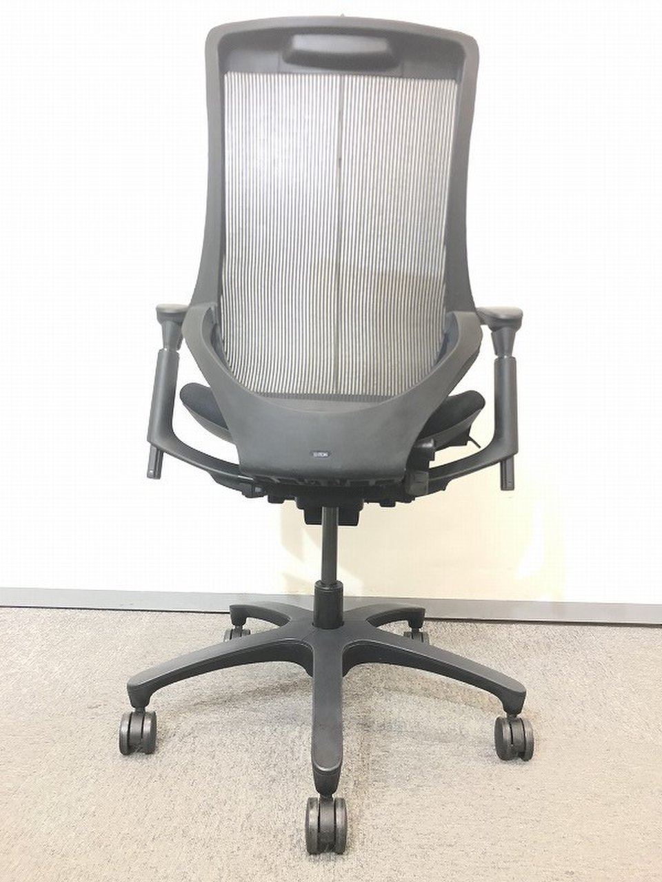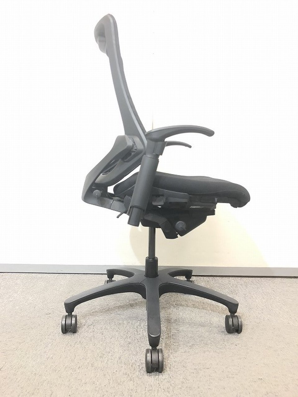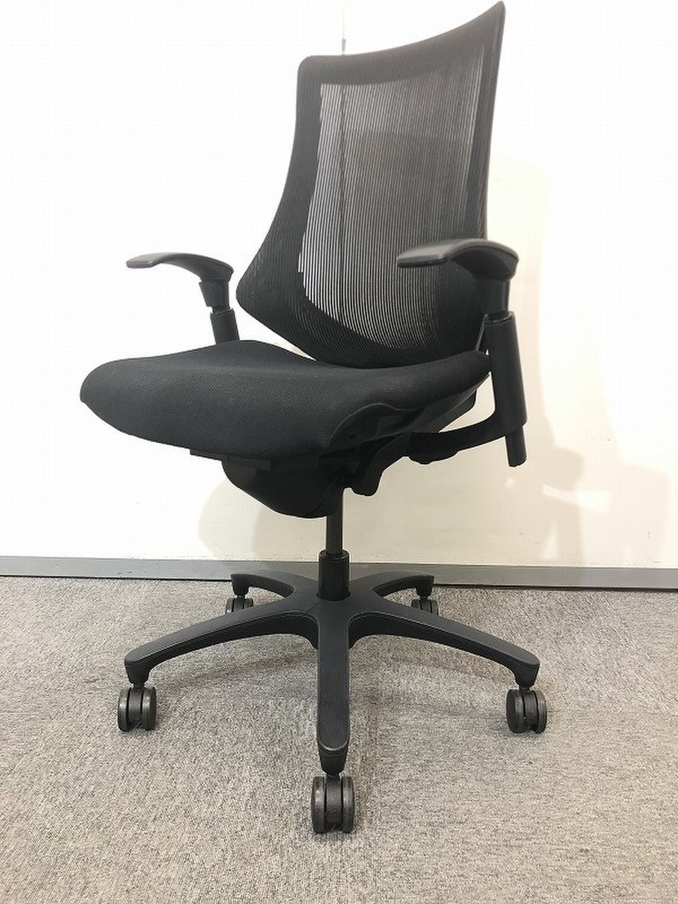 【三次元フォルムが腰にフィット!】希少なエラストマータイプ! ■イトーキ製 エフチェア 肘付 ブラック ハイバック ■姿勢の変化にフレキシブルに対応!