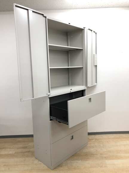 【ライトグレー】オカムラ/レクトライン【両開き+3段ラテラル】【広々収納】- 日本橋店