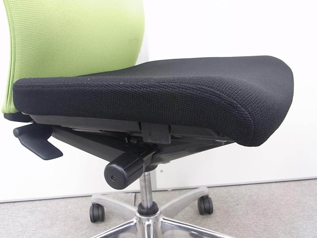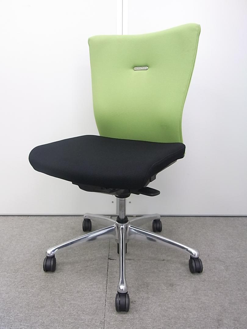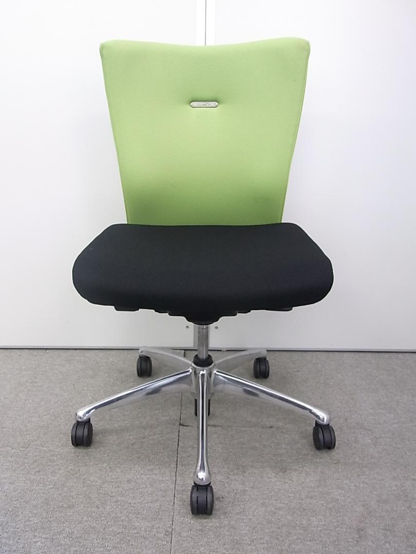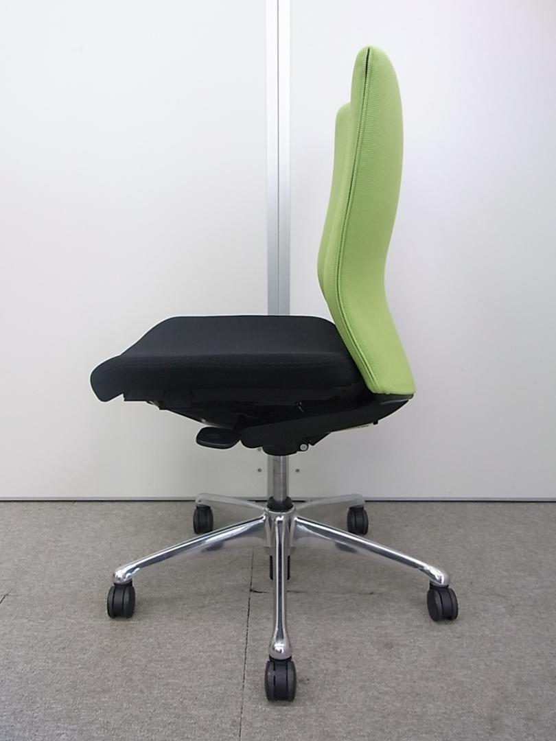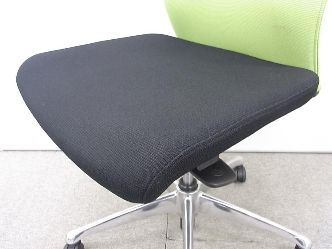 オカムラ製 フィーゴ シームレスタイプ ブラック×ライトグリーン【機能とデザインを兼ね備えたチェア】肘外し