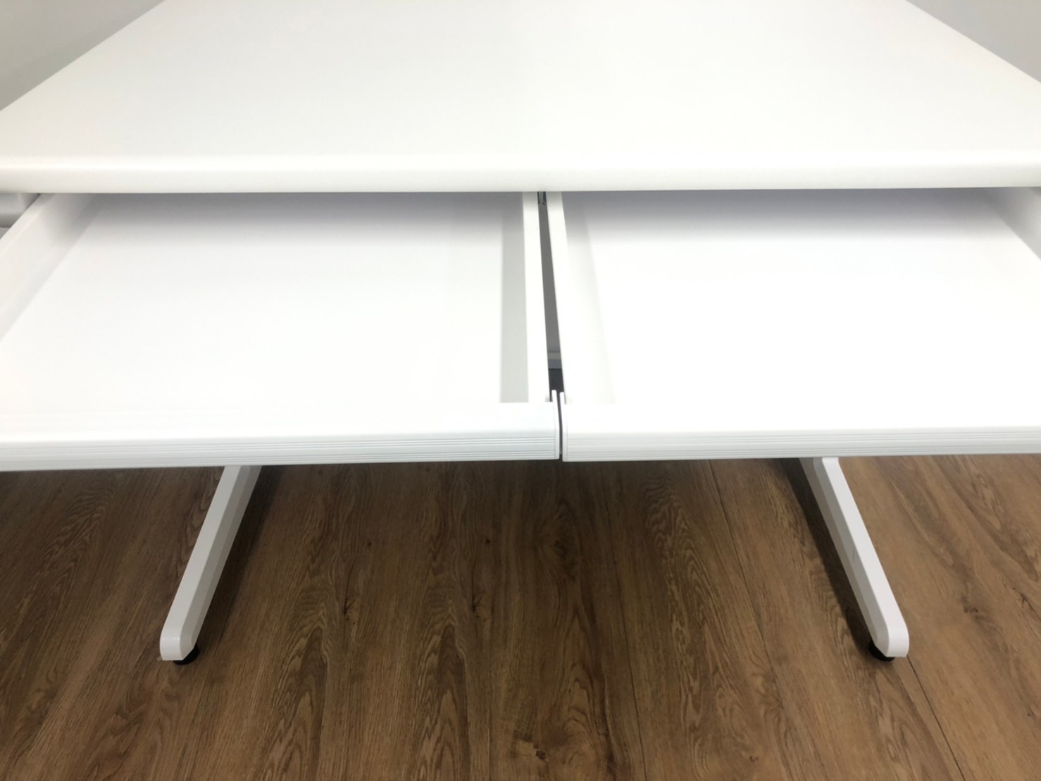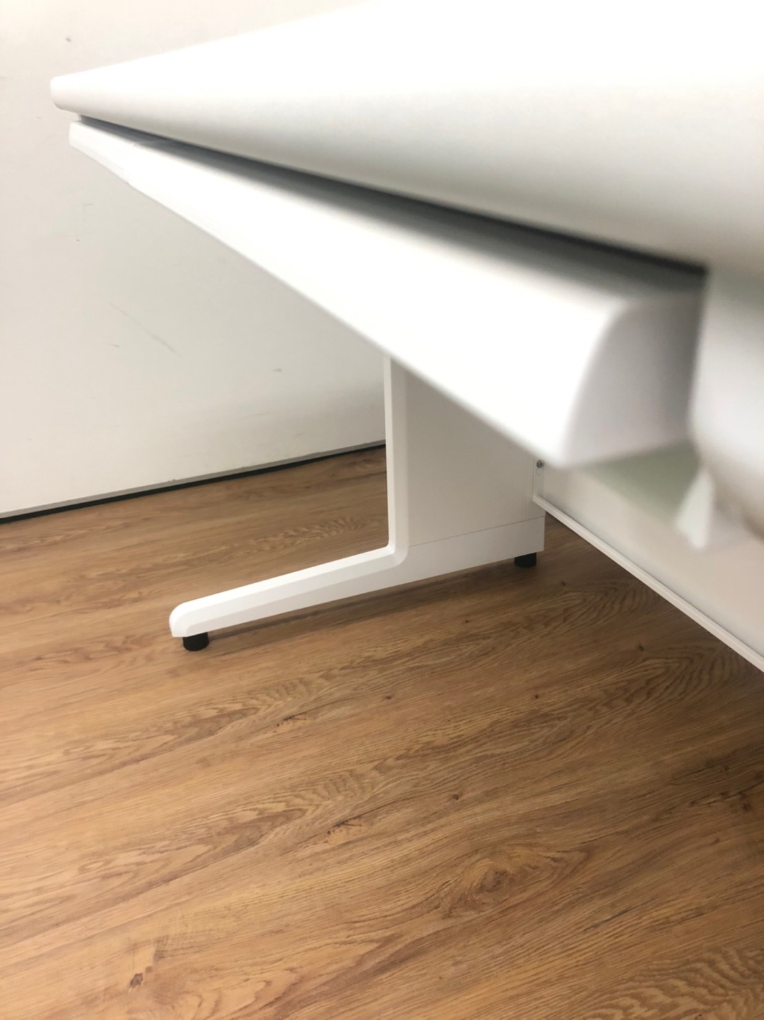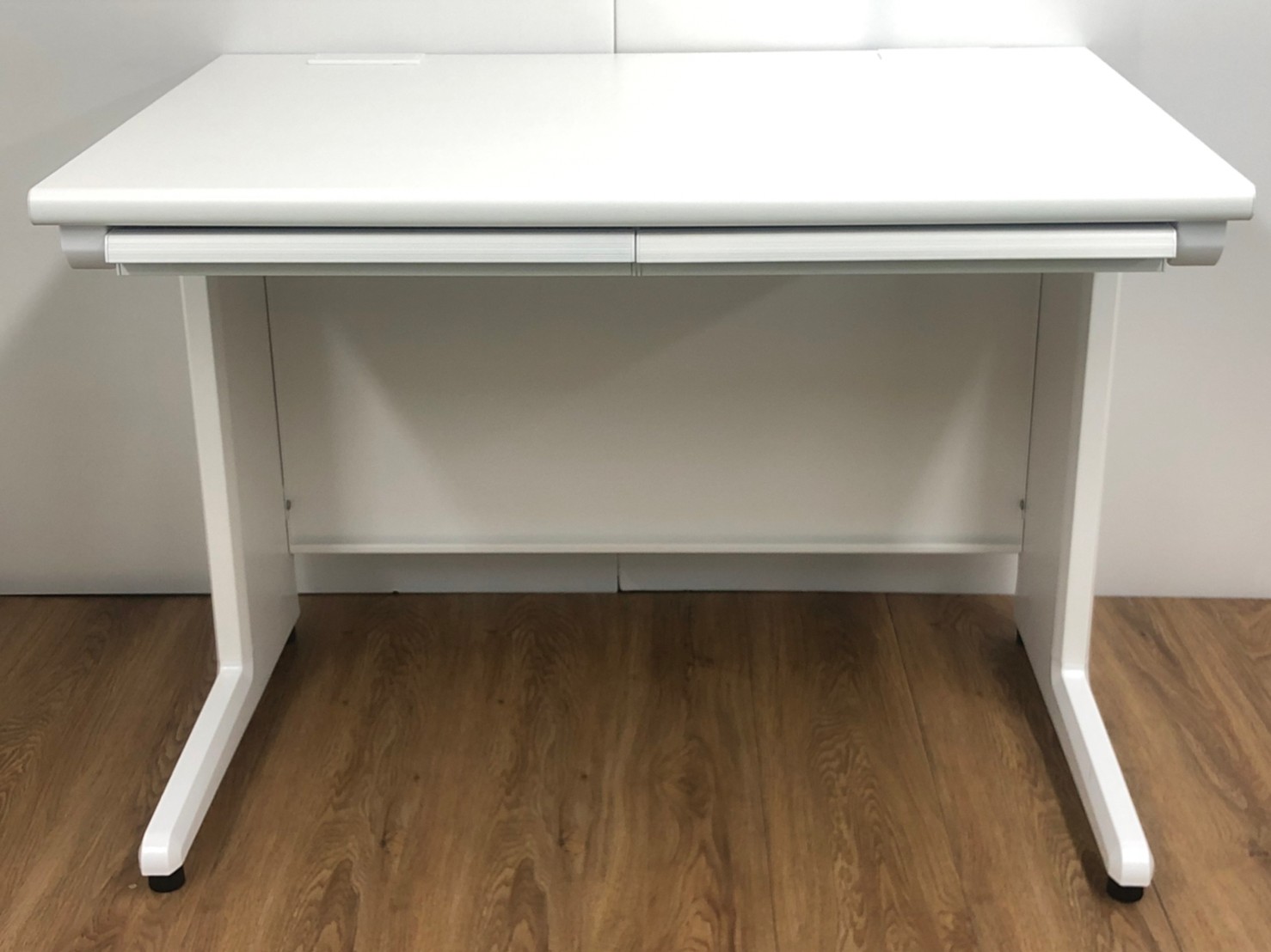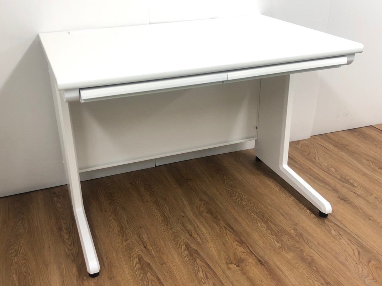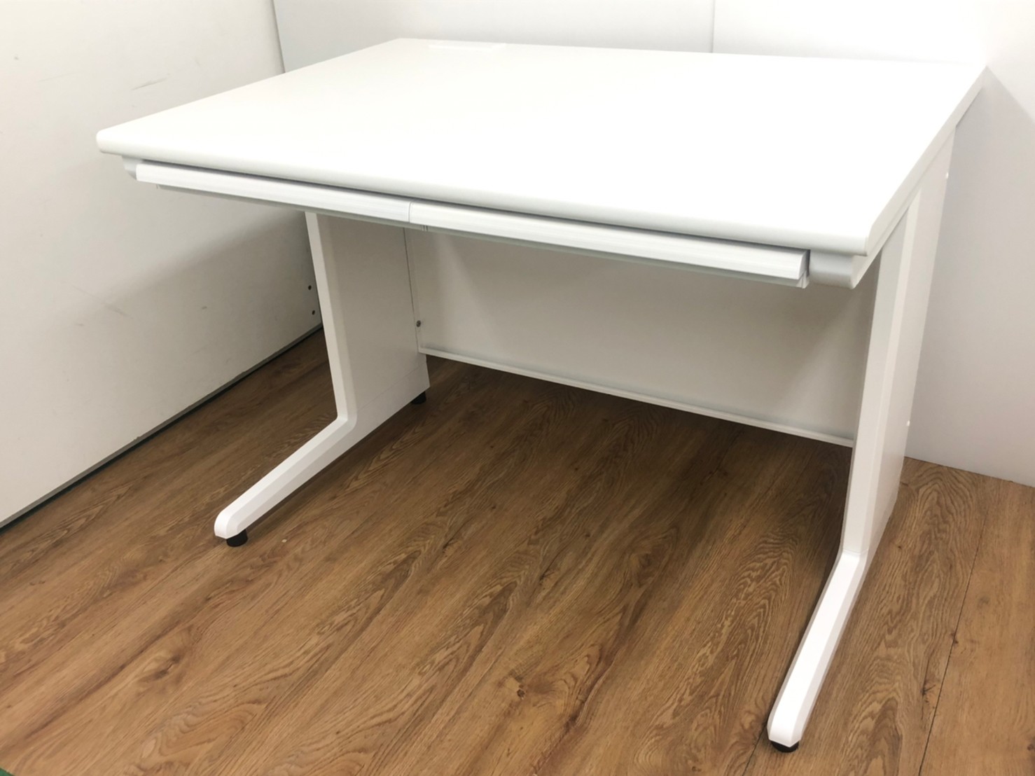 人気のホワイトデスクが入荷!木製天板 オフィスデスク 事務机 W1000 引出し付- 品川・三田店