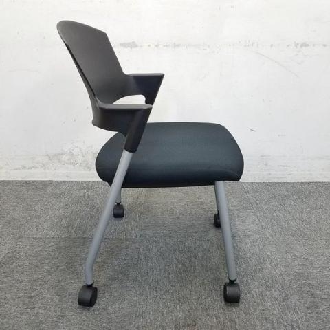 【6/16・8脚入荷予定!】【シンプルスマートなスタッキングチェア!分厚いクッションで長時間でも快適な座り心地!】■コクヨ製 プロッティ スタッキングチェア 肘付ミーティングチェア ■固定肘 ■キャスター付 ■ブラック ■背面樹脂 オフィスバスターズ梅田本店