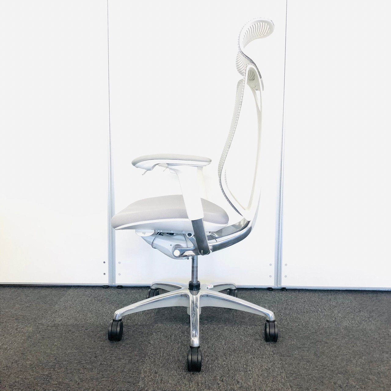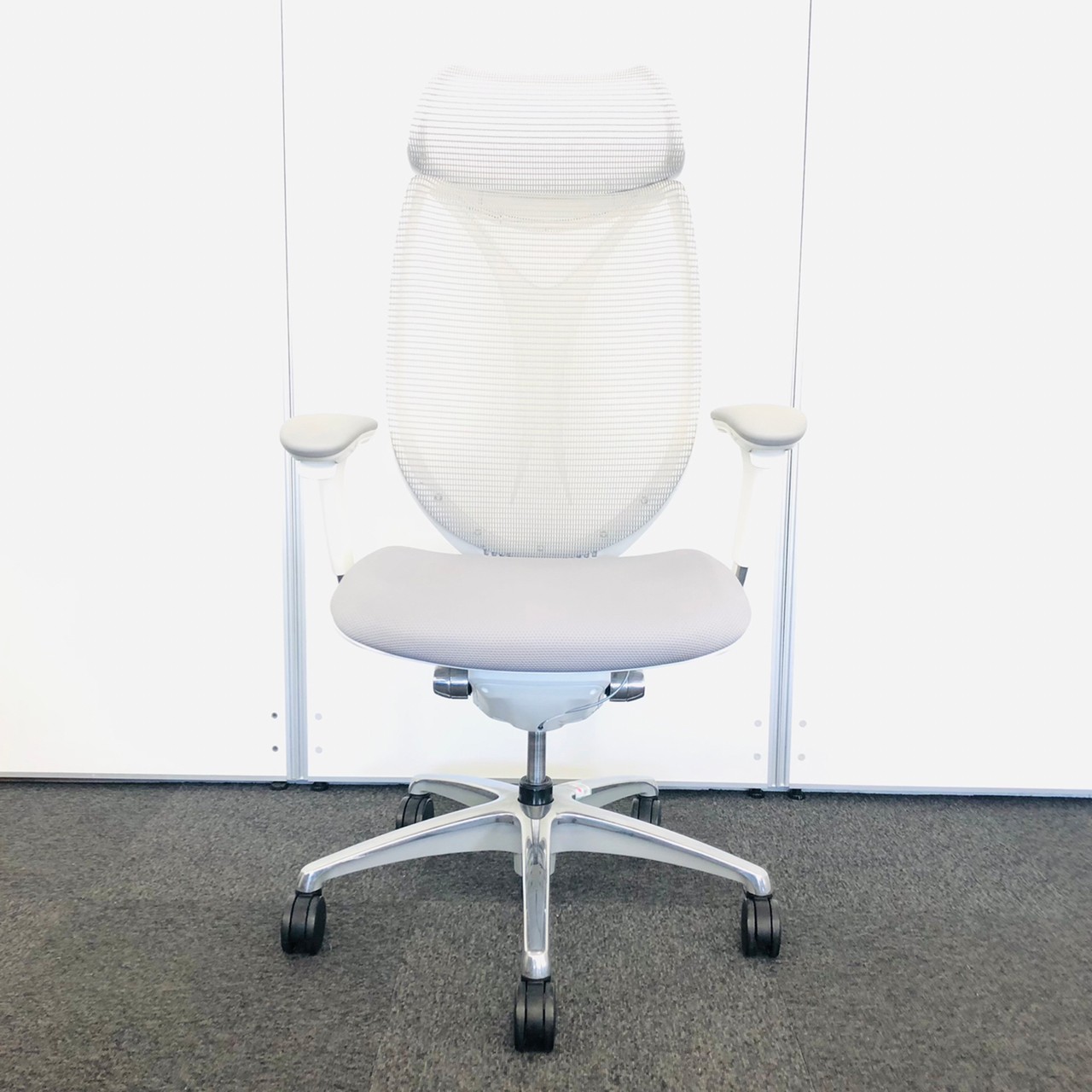 入替セール品につきお値下げ!【オカムラの高級チェアが6脚まとまって入荷!】オカムラ サブリナ ハイバック アジャストアーム ホワイトボディ アルミフレーム 背カラー:ライトグレー 座カラー:ライトグレー 【有名なシルフィーチェアと同じ前傾チルト機能が備わっています!】