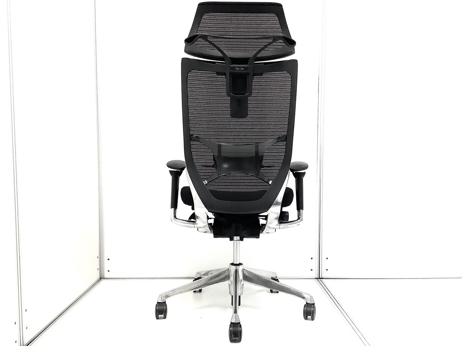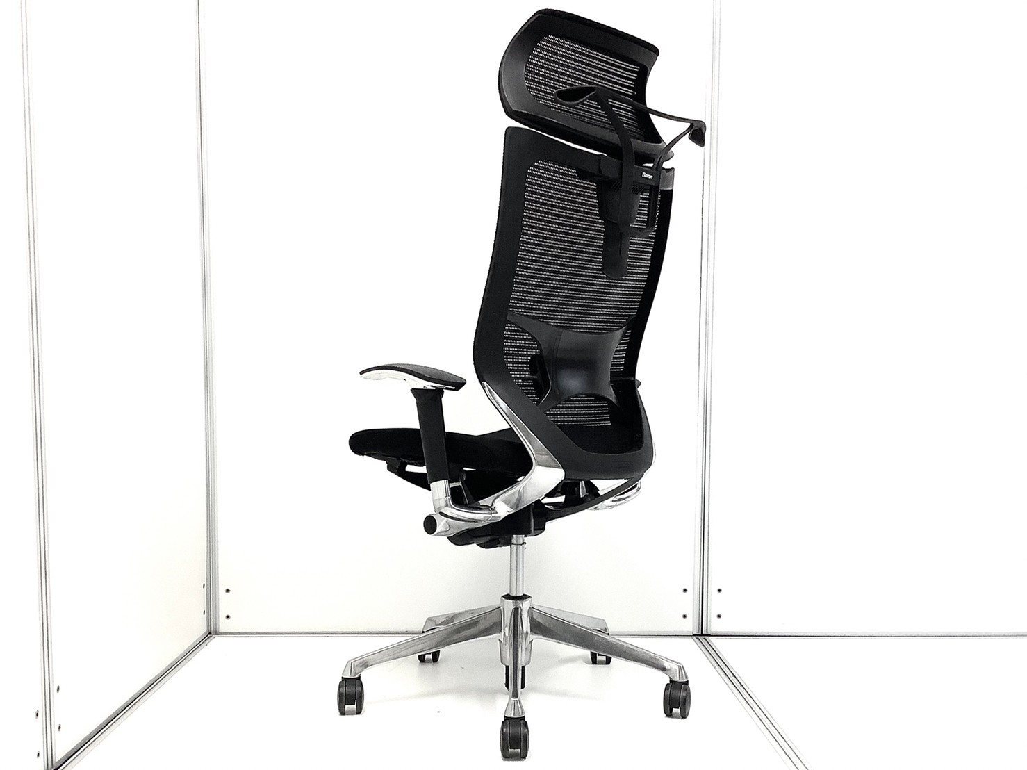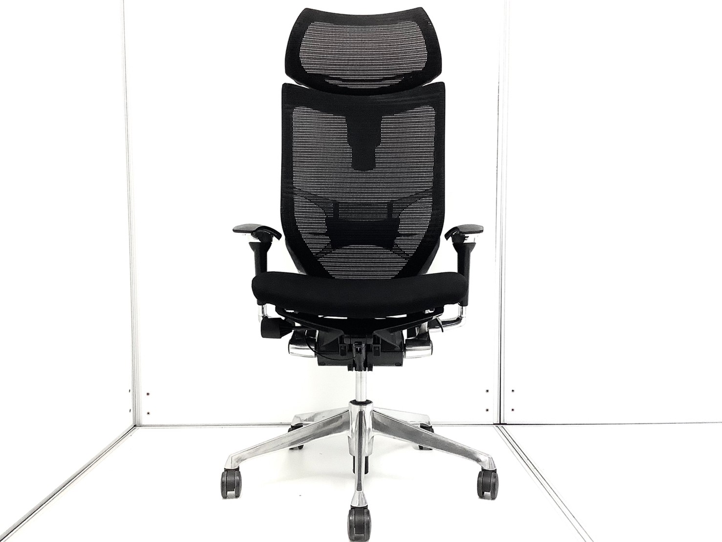 【オフィスの執務室、会議室におすすめ!】■オカムラ(okamura)製 バロン(Baron)チェア 肘付き ハイバック ■背・座面メッシュ ■可動肘 ■ヘッドレスト付き ■ブラック【硬めの座面が大人気!国産メッシュチェアの代表格!】