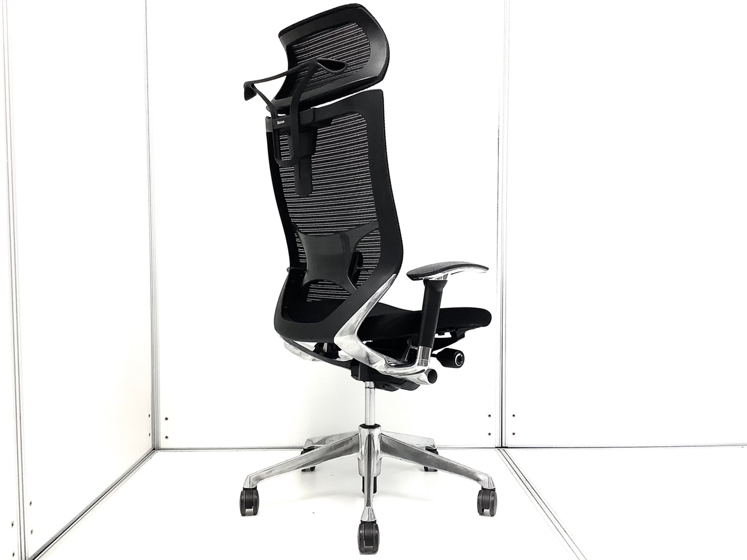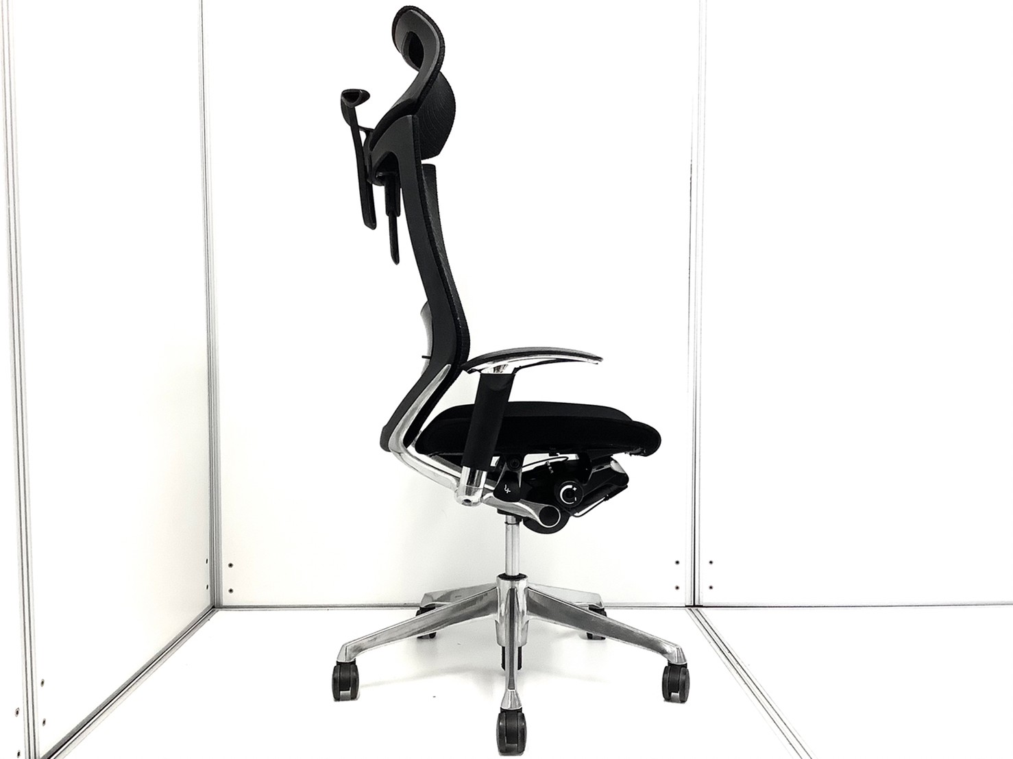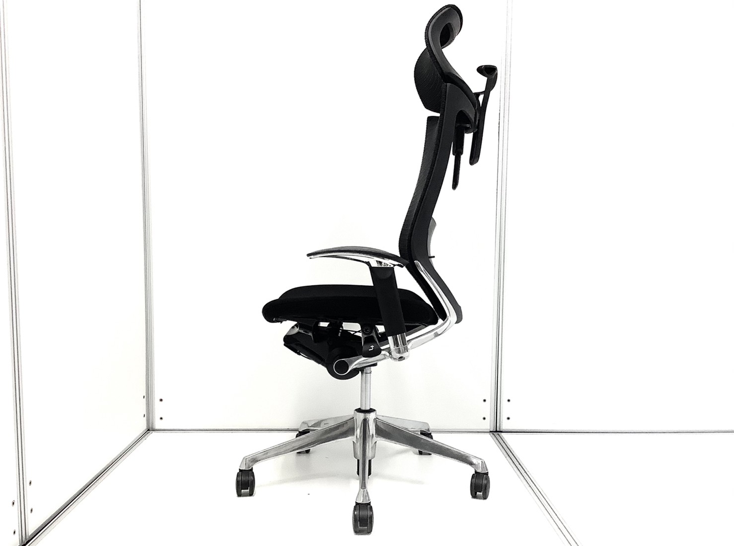【オフィスの執務室、会議室におすすめ!】■オカムラ(okamura)製 バロン(Baron)チェア 肘付き ハイバック ■背・座面メッシュ ■可動肘 ■ヘッドレスト付き ■ブラック【硬めの座面が大人気!国産メッシュチェアの代表格!】