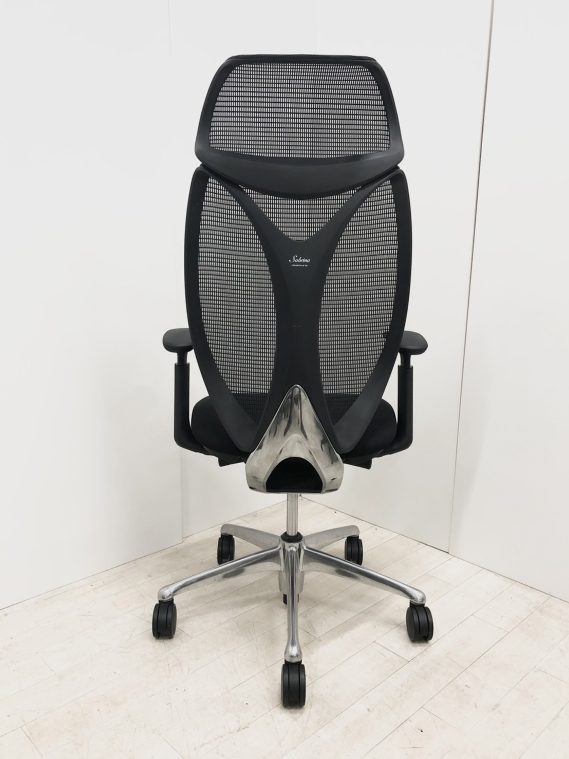 【前傾チルト付・流れるような美しいフォルムの最高級メッシュチェア!】■オカムラ(okamura)製 サブリナ(Sabrina) 肘付き エクストラハイバックチェア 背面メッシュ ■可動肘・ヘッドレスト・ハンガー付き ■ブラック【オフィスにもご自宅用にも人気の一品!】