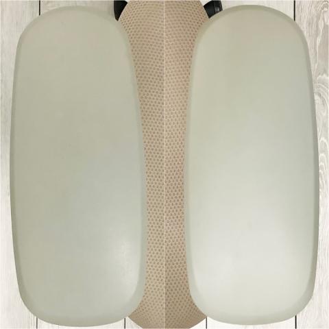 - あり黄ばみ・変色が広い範囲にうっすらある、または濃い黄ばみ・変色が一部ある。(例、座面・背もたれ、脚部等にある。)