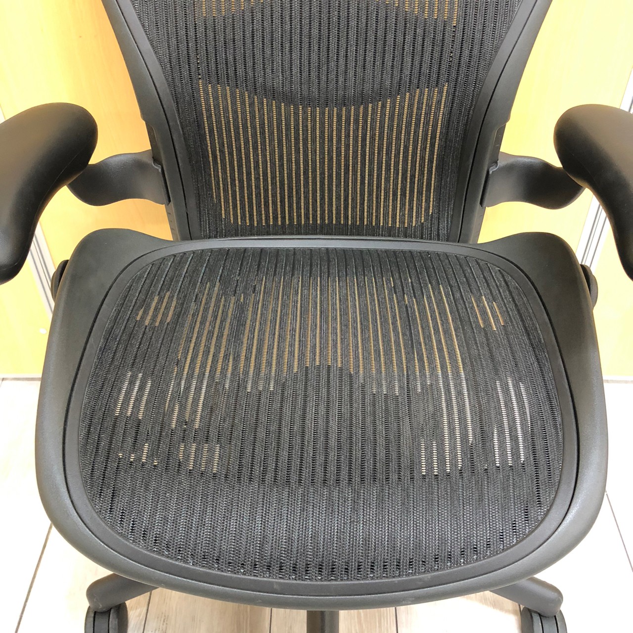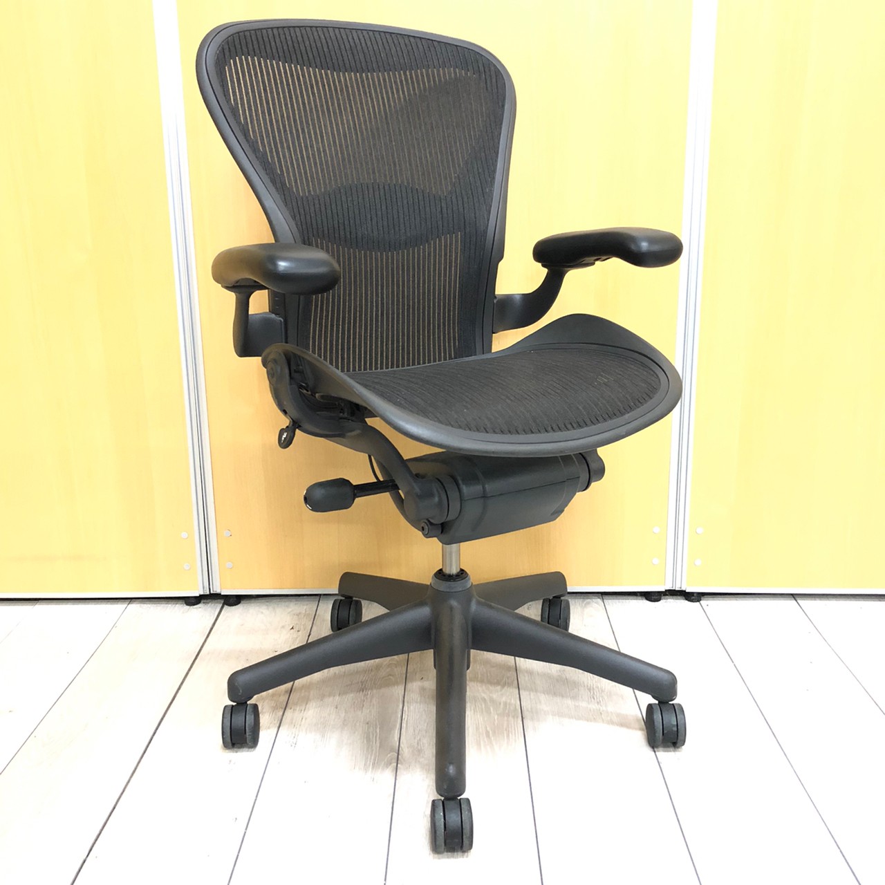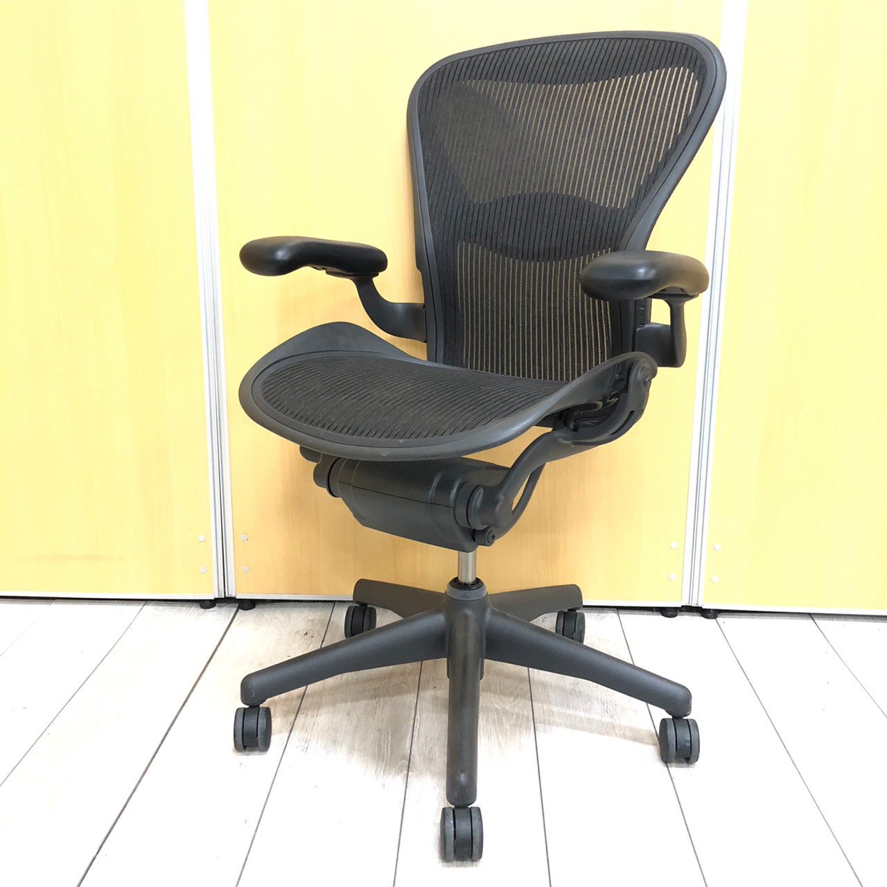 【★状態イマイチのためお安く!】■ハーマンミラー製 アーロンチェア Bサイズ 固定肘 ※キズあり・ランバーサポート無・昇降ガス圧弱めのためお安く!【訳あり特価品】