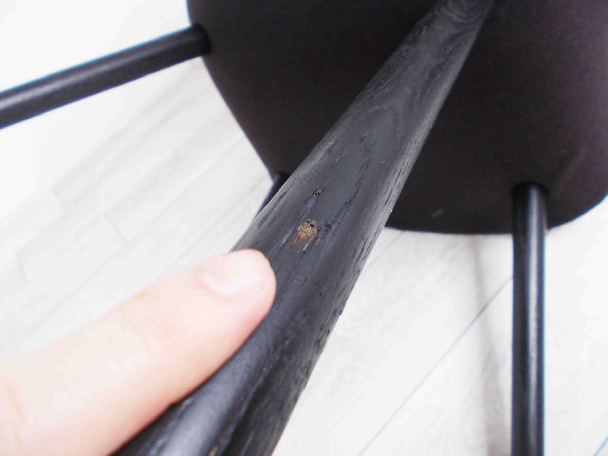 - かなり強い濃い黄ばみ・変色が商品全体にある。(例、座面・背もたれ、脚部等にある。)
