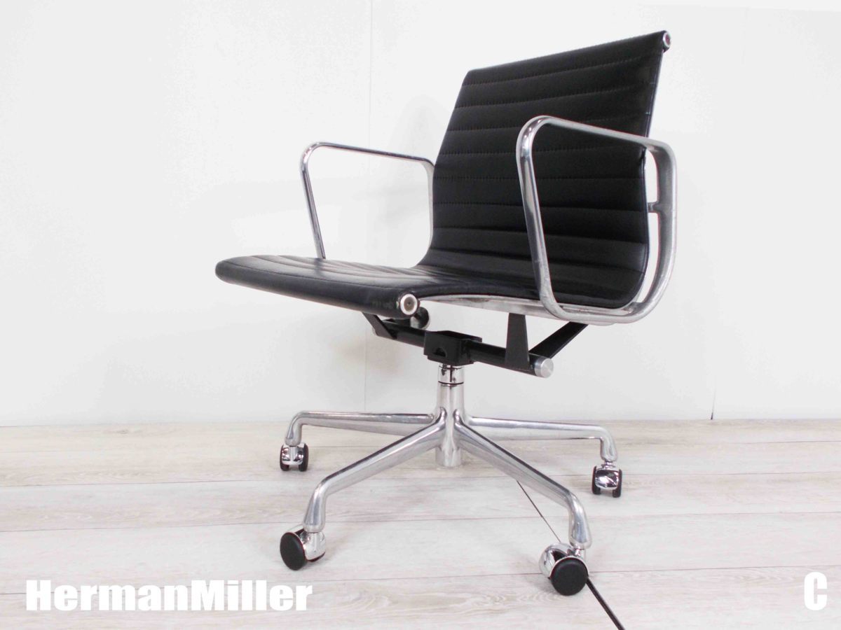 C)HermanMiller/ハーマンミラー イームズ アルミナムチェア ローバック ブラック 本革在庫がある店舗一覧