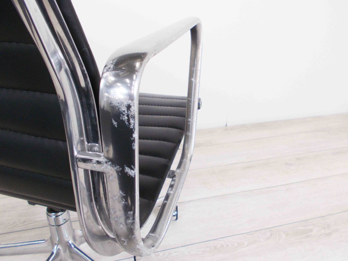 F)HermanMiller/ハーマンミラー イームズ アルミナムチェア ローバック ブラック 本革在庫がある店舗一覧