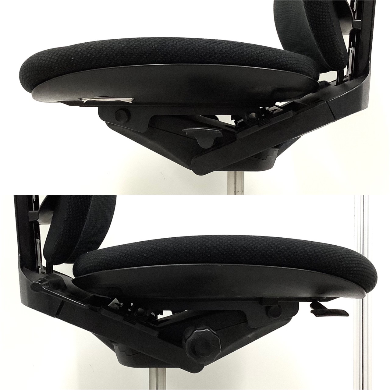 例えば、座面は、イトーキ独自の"ベンディングシート"という機構により、クッション、インターシェル、空洞という三層構造になっています。 この真ん中に挟まっているインナーシェルが、着座時の姿勢に合わせて体重を分散してくれるので、どんな姿勢でも体になじみ、疲労を軽減してくれます。 さらに、座面は前後に4センチほど奥行きを調整でき、前傾姿勢で座りたい、深く腰掛けたい、膝裏を圧迫されたくないなど、個人の好みに合った快適さにカスタマイズが可能となっています。