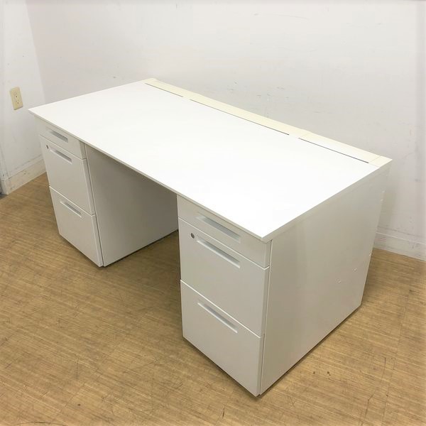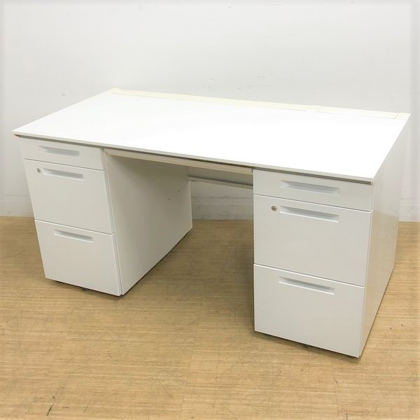 【T11】【商品入替のため、残り4台限り】コクヨ製 アイエス(IS) ホワイト 両袖 デスク W1400xD700xH720サイズ シリンダー 収納スペース充実! 机上をスッキリ整理! 幅広いワークスペースで上長席にもオススメ! W1400両袖机!!