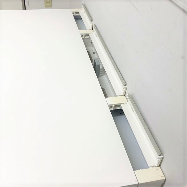 - 地震時、センター引出しが飛び出さないよう、ラッチ機構を装備。脚はデスクの横ズレを軽減させる設計になっています。