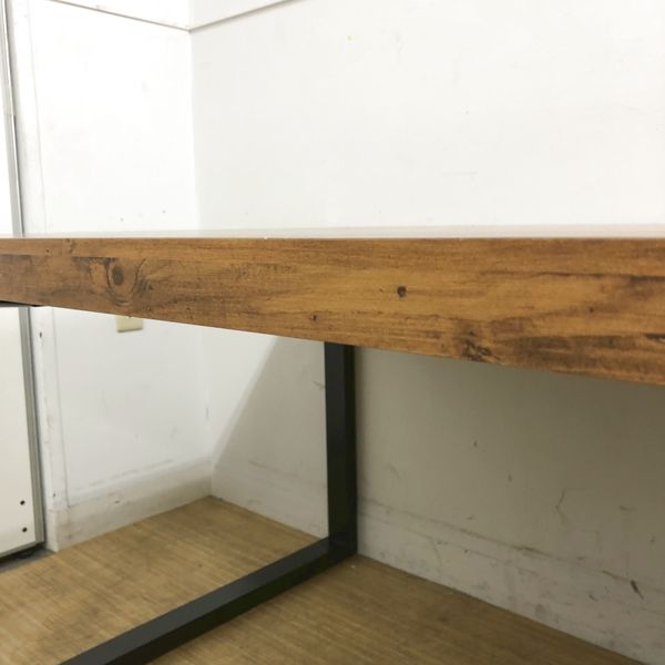 - 目立つ箇所複数あり深い傷・凹みが商品全体にある。(例、天板、幕板、棚板、サイド部分、脚部等にある。)