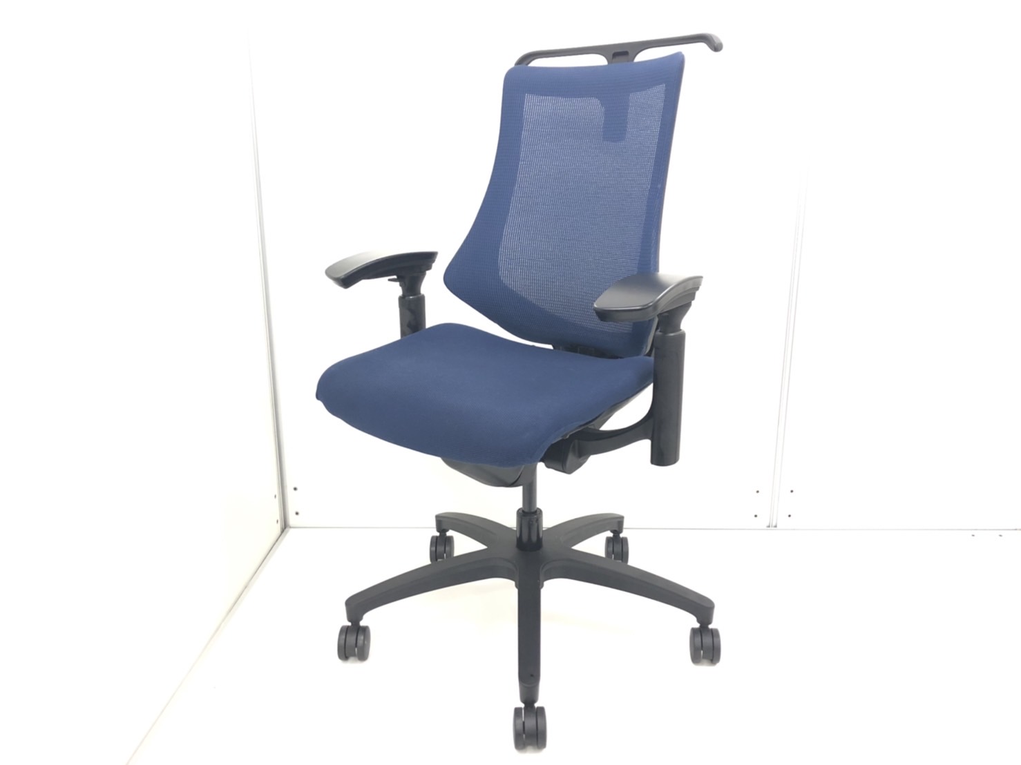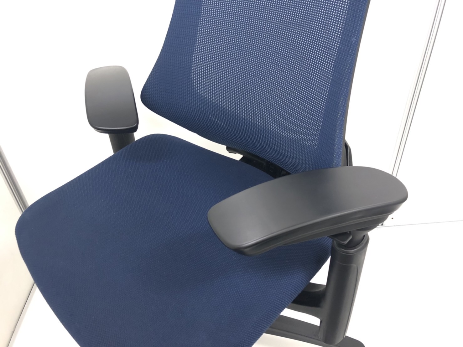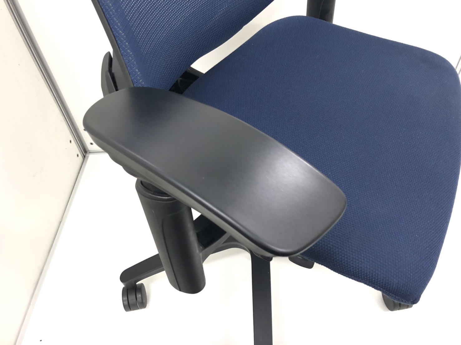 【包み込まれるフィット感!】 ■イトーキ製 エフチェア 肘付 ネイビーブルー ■デスクワークの疲労を軽減!