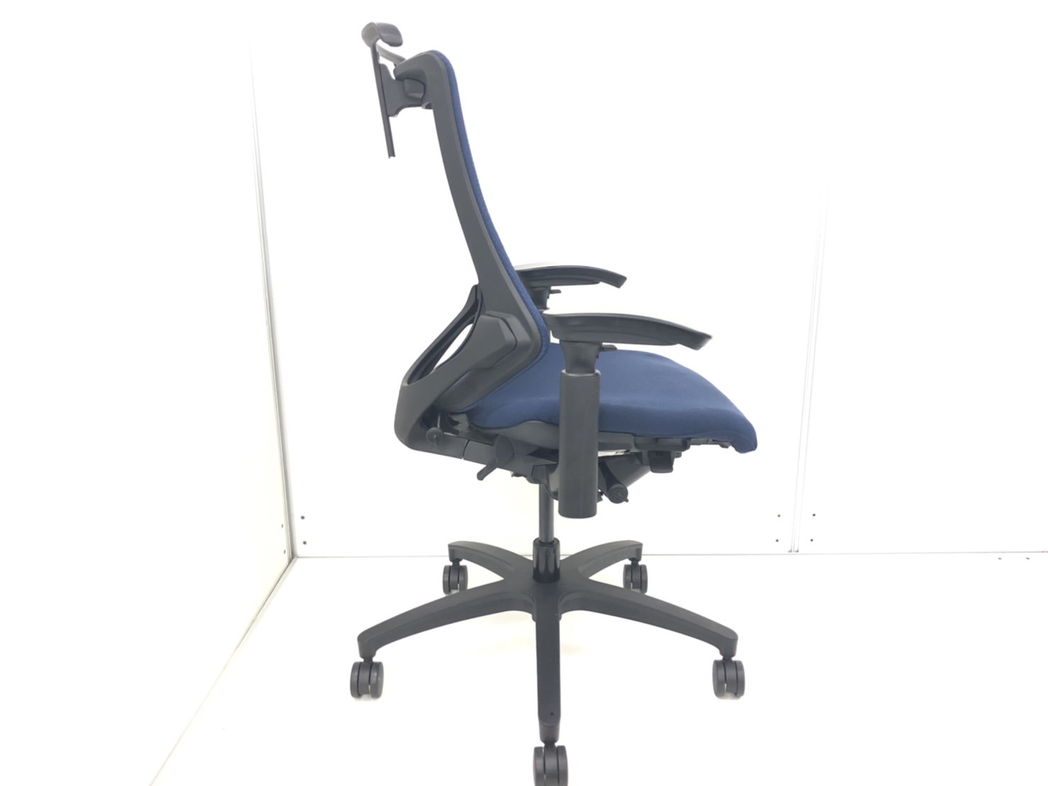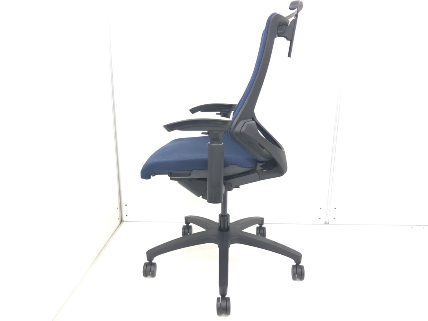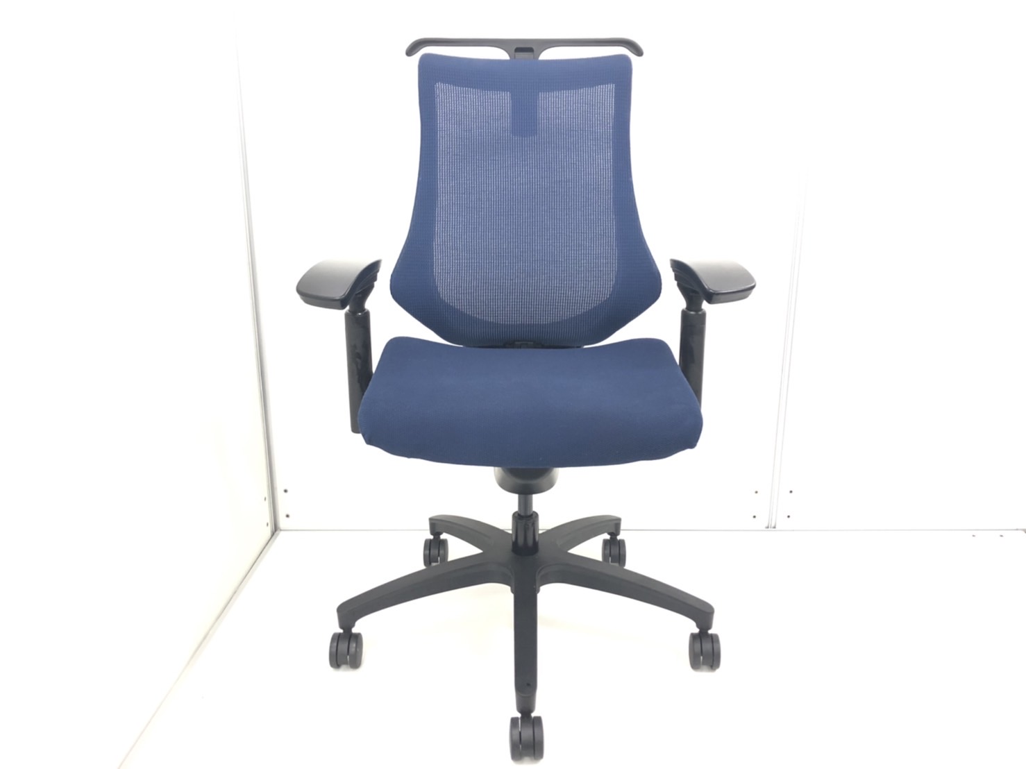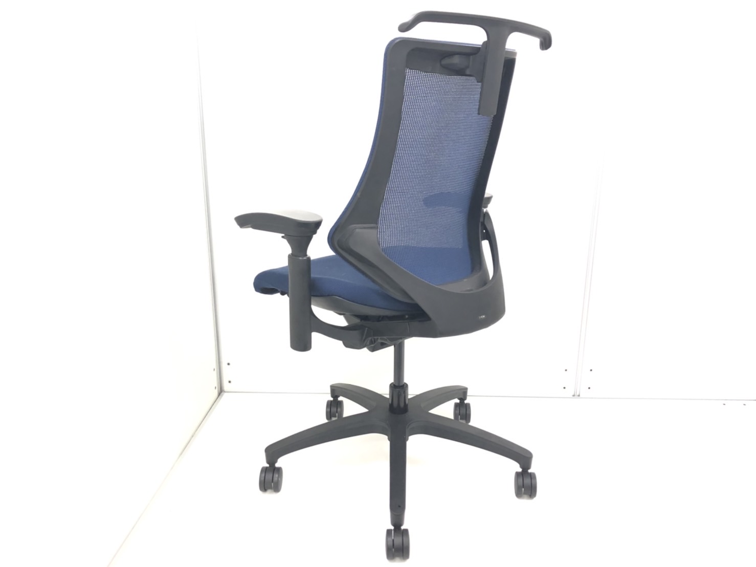 【包み込まれるフィット感!】 ■イトーキ製 エフチェア 肘付 ネイビーブルー ■デスクワークの疲労を軽減!
