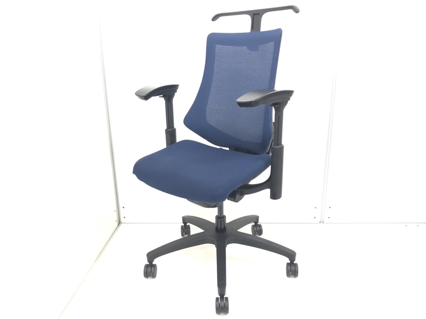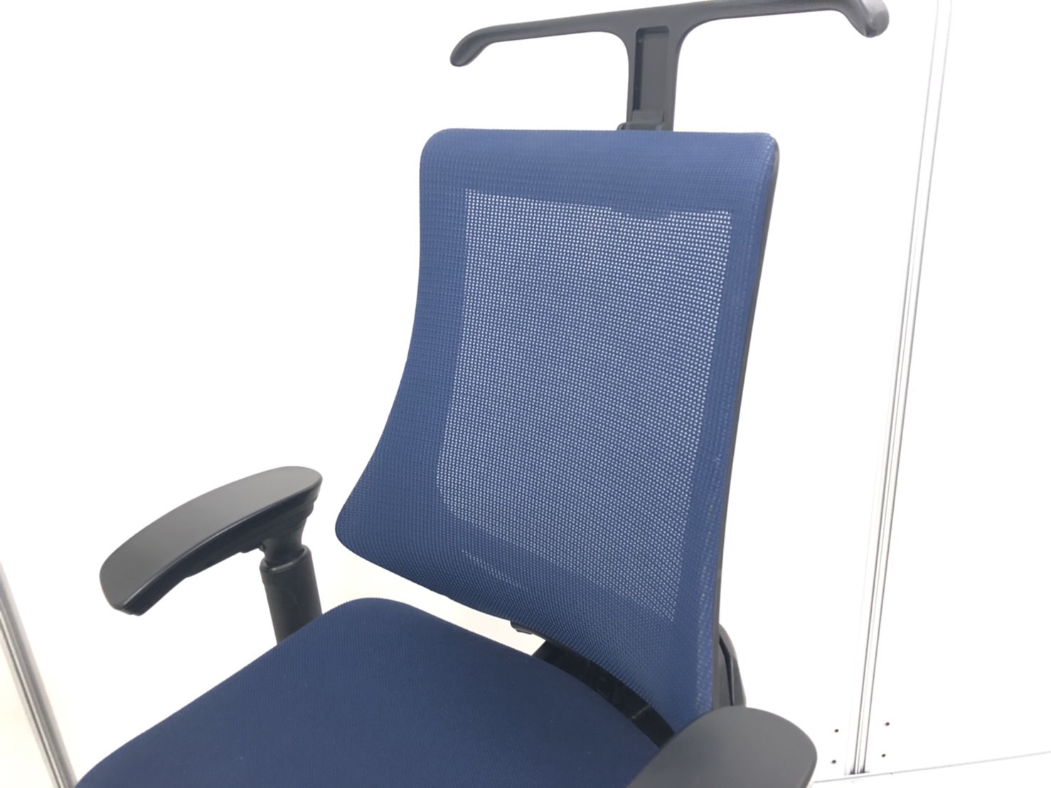 【在庫入替セール品!】【姿勢の変化にフレキシブルに対応!】■イトーキ エフチェア 可動肘付 ネイビーブルー ハンガー付 ■三次元フォルムが腰にフィット!