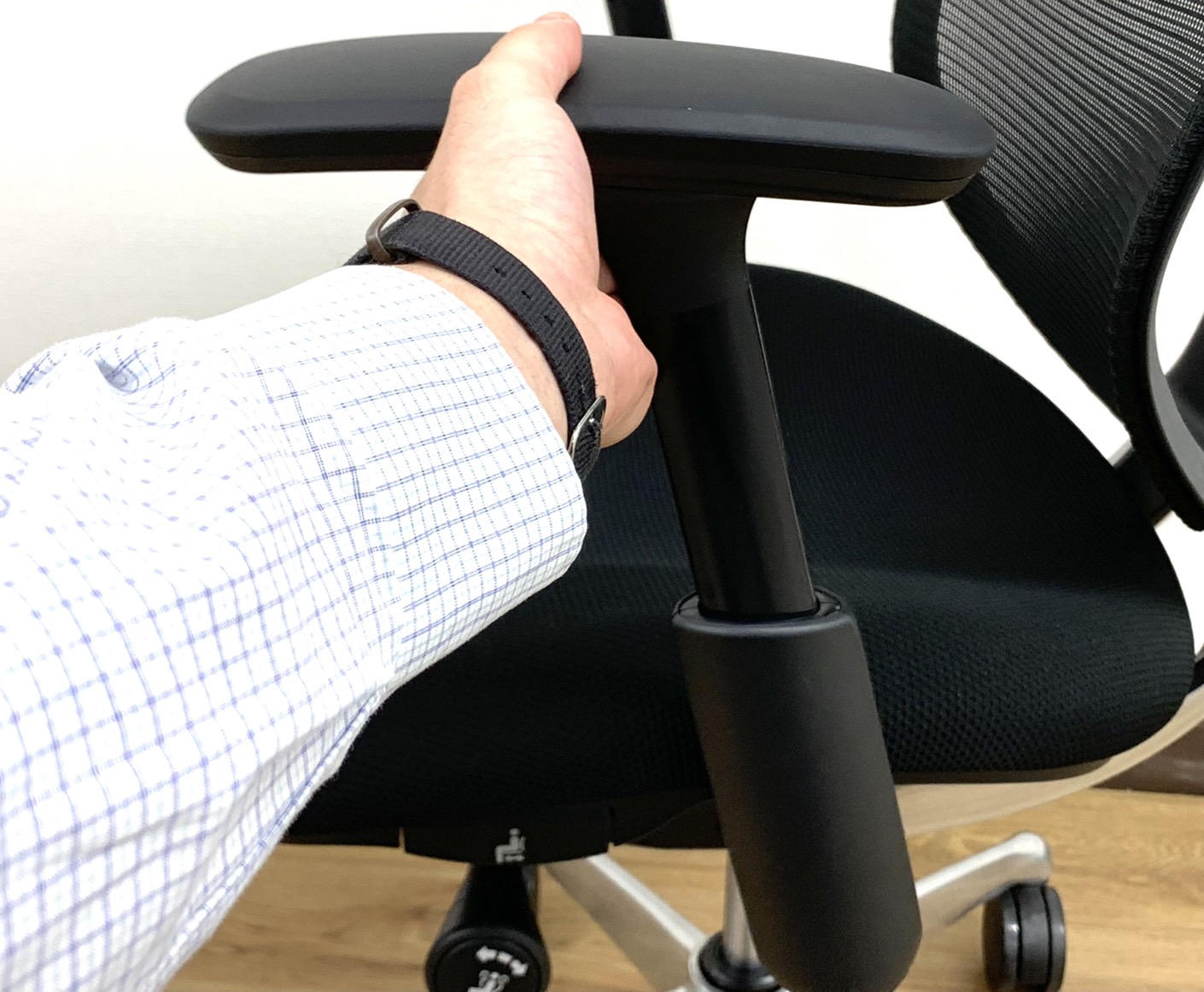 - 肘パッド部の上下(1D)、角度(2D)、前後(3D)、左右(4D)の調整が可能。可動幅は、上下100mm、内側20度、外側10度、前後40mm、左右片側25mmです。