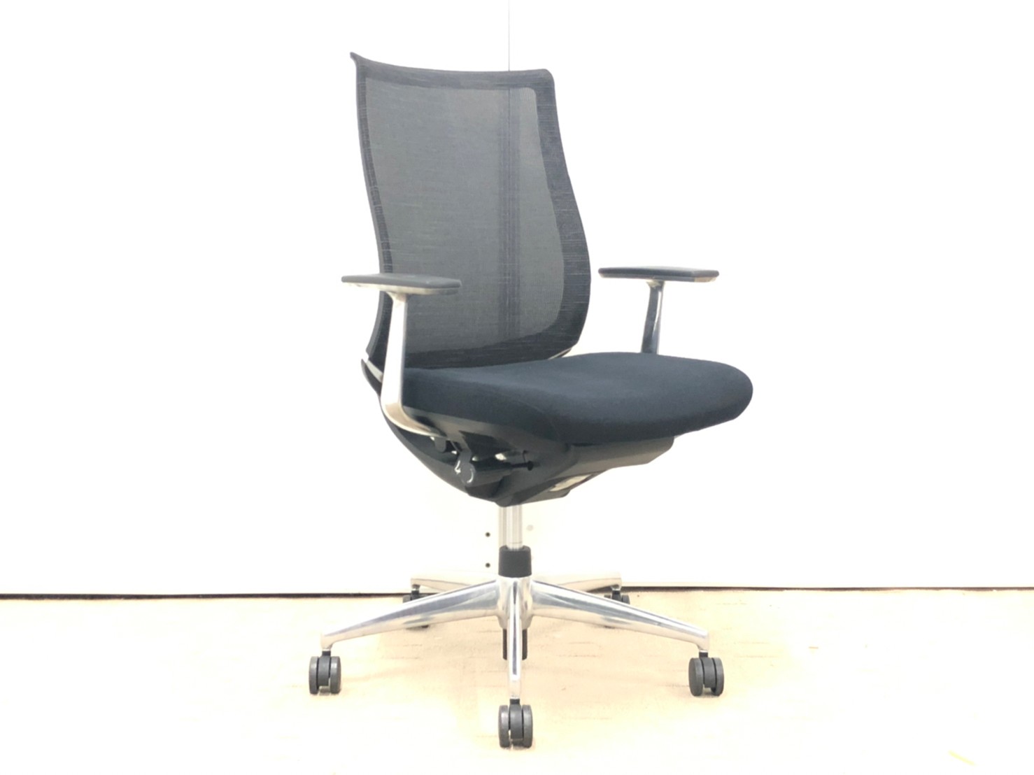 前傾機能付き高級チェア!重厚感のあるブラック×ポリッシュ仕様 応接室や会議用にもおすすめ! ■コクヨ/ベゼル/ブラック テクスチャードメッシュ