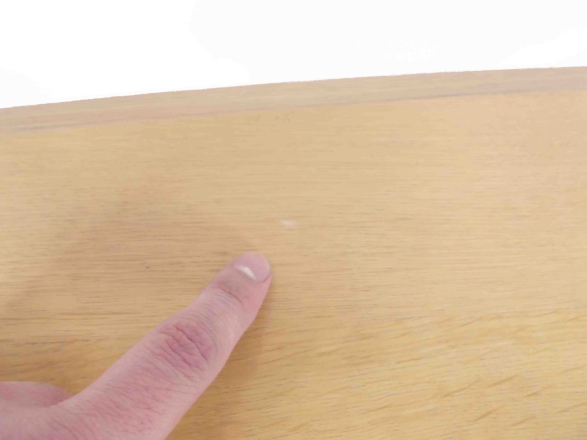 - あり黄ばみ・変色が広い範囲にうっすらある、または濃い黄ばみ・変色が一部ある。(例、天板、幕板、棚板、サイド部分、脚部等にある。)