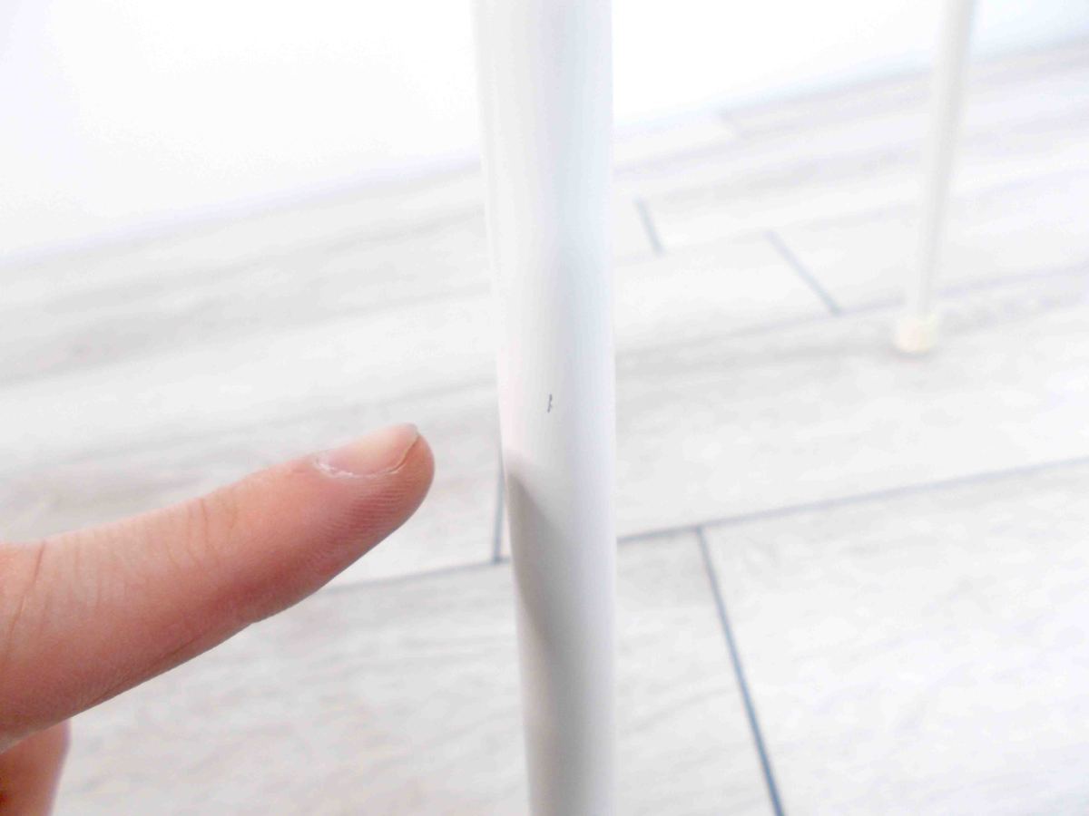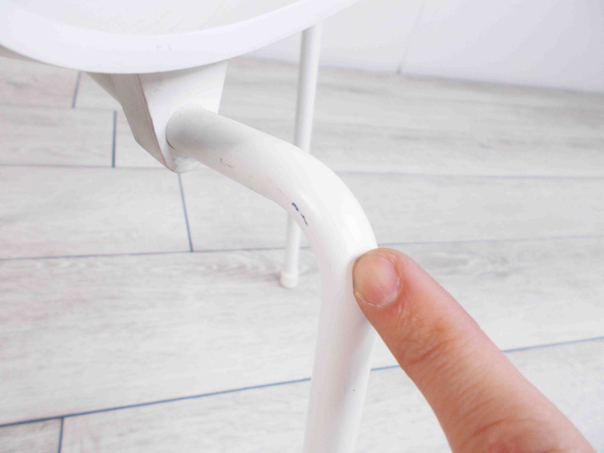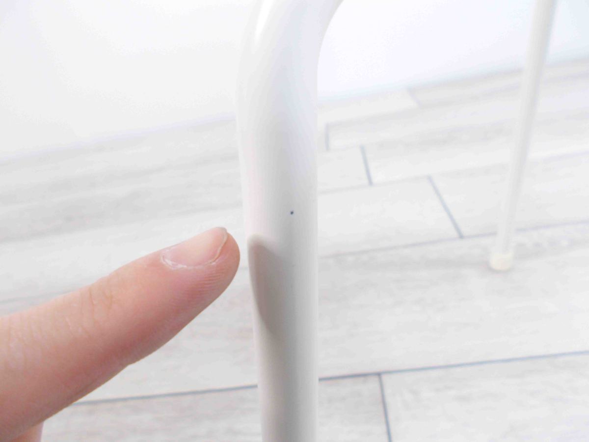 - かなり強い濃い黄ばみ・変色が商品全体にある。(例、座面・背もたれ、脚部等にある。)