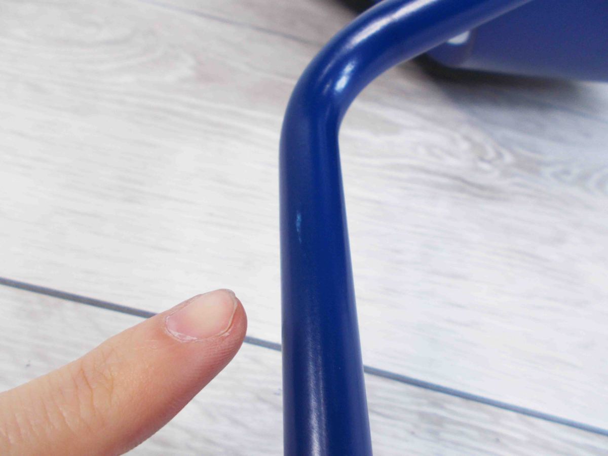 - かなり強い濃い黄ばみ・変色が商品全体にある。(例、座面・背もたれ、脚部等にある。)