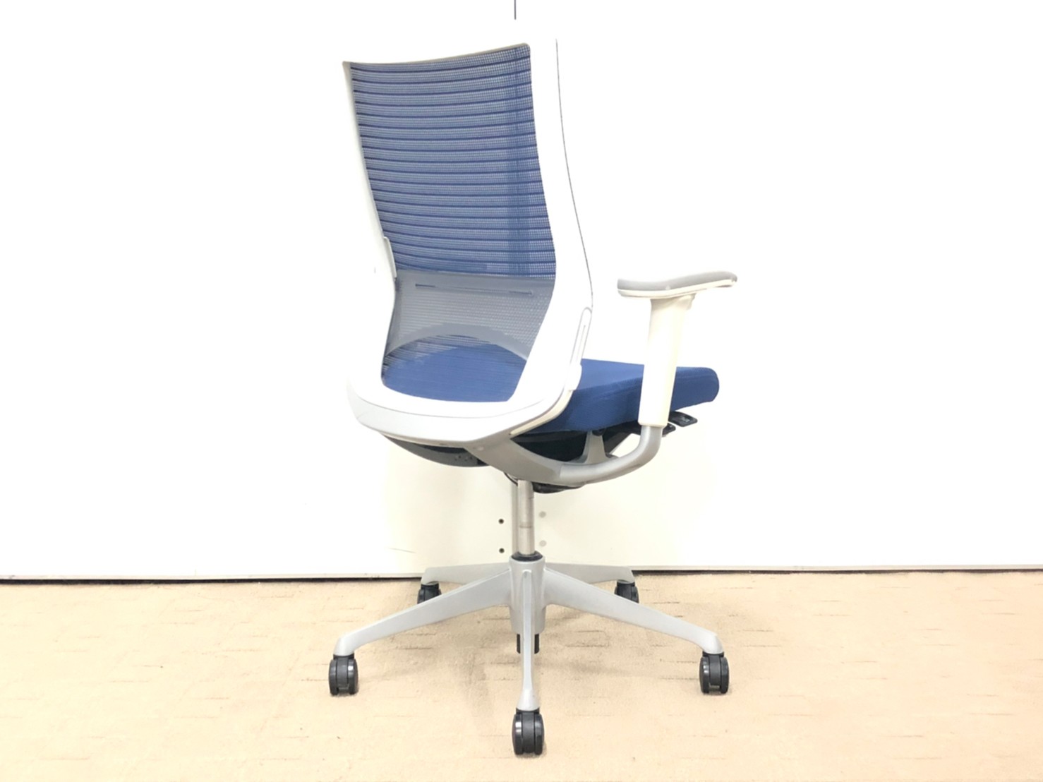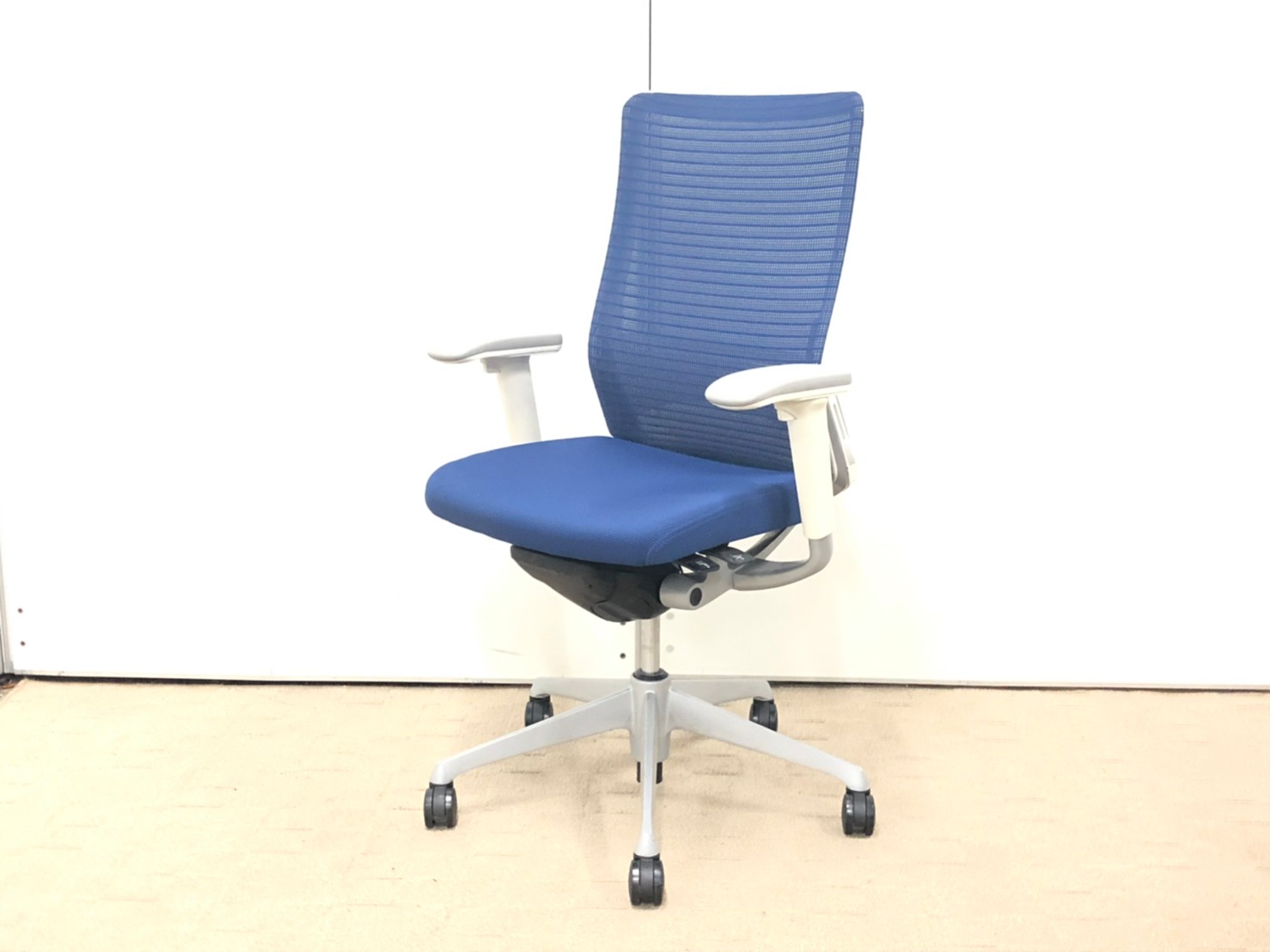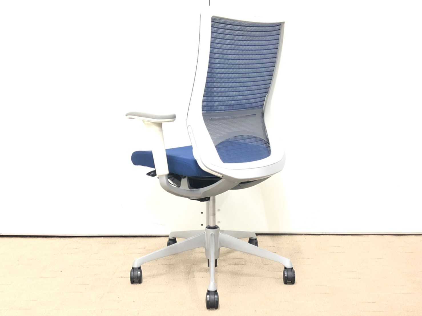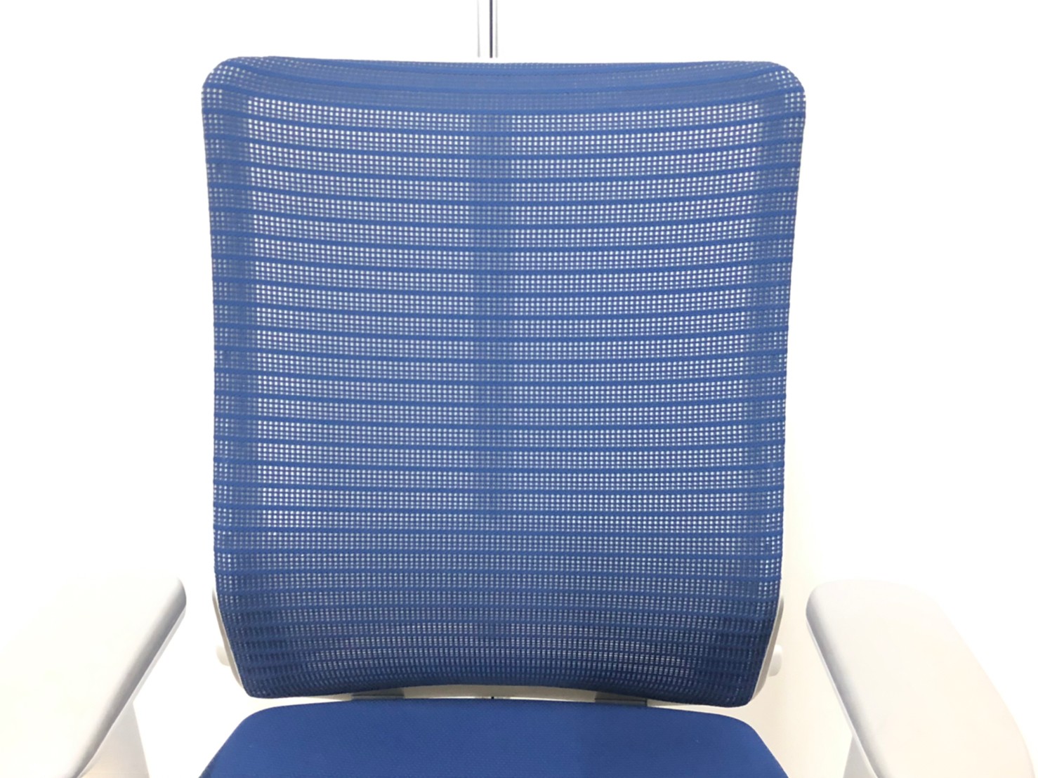 【在庫入替セール】【5脚入荷】【どんな空間にも調和するデザインと最上級の操作性!背面メッシュで通気性抜群!】■オカムラ(okamura)製 コーラル (Choral) 肘付ハイバック ■ミディアムブルー ■メッシュ背面 ■可動肘 ■ハンガー付【K】【T8】