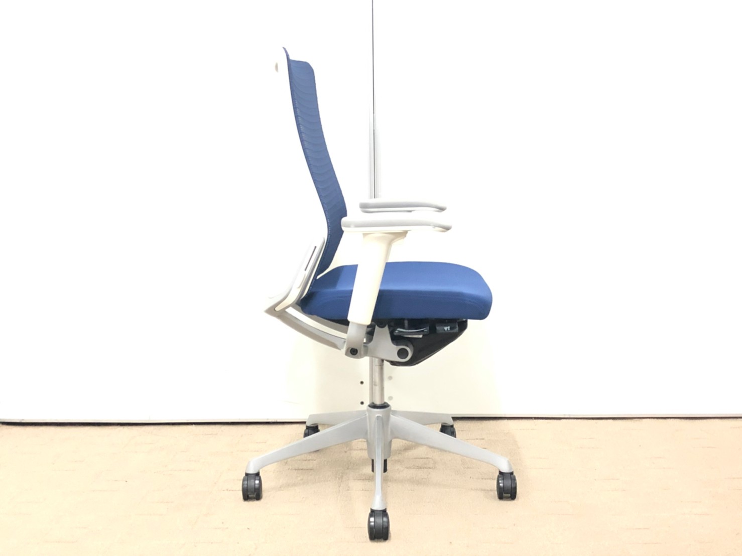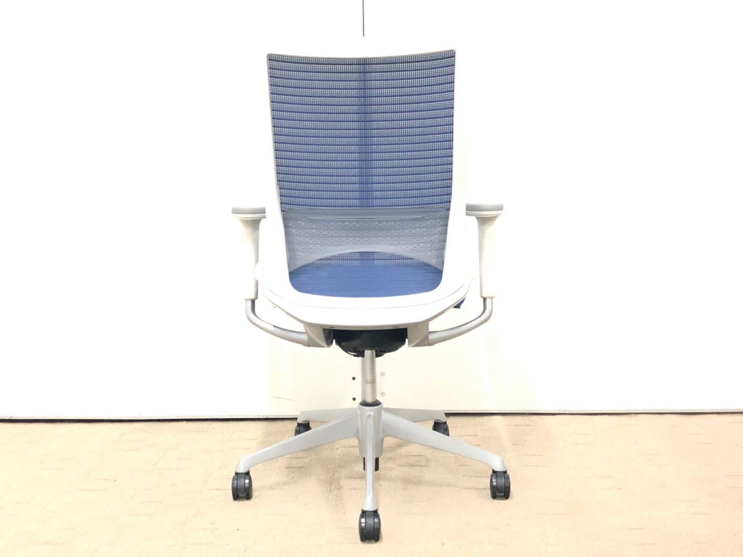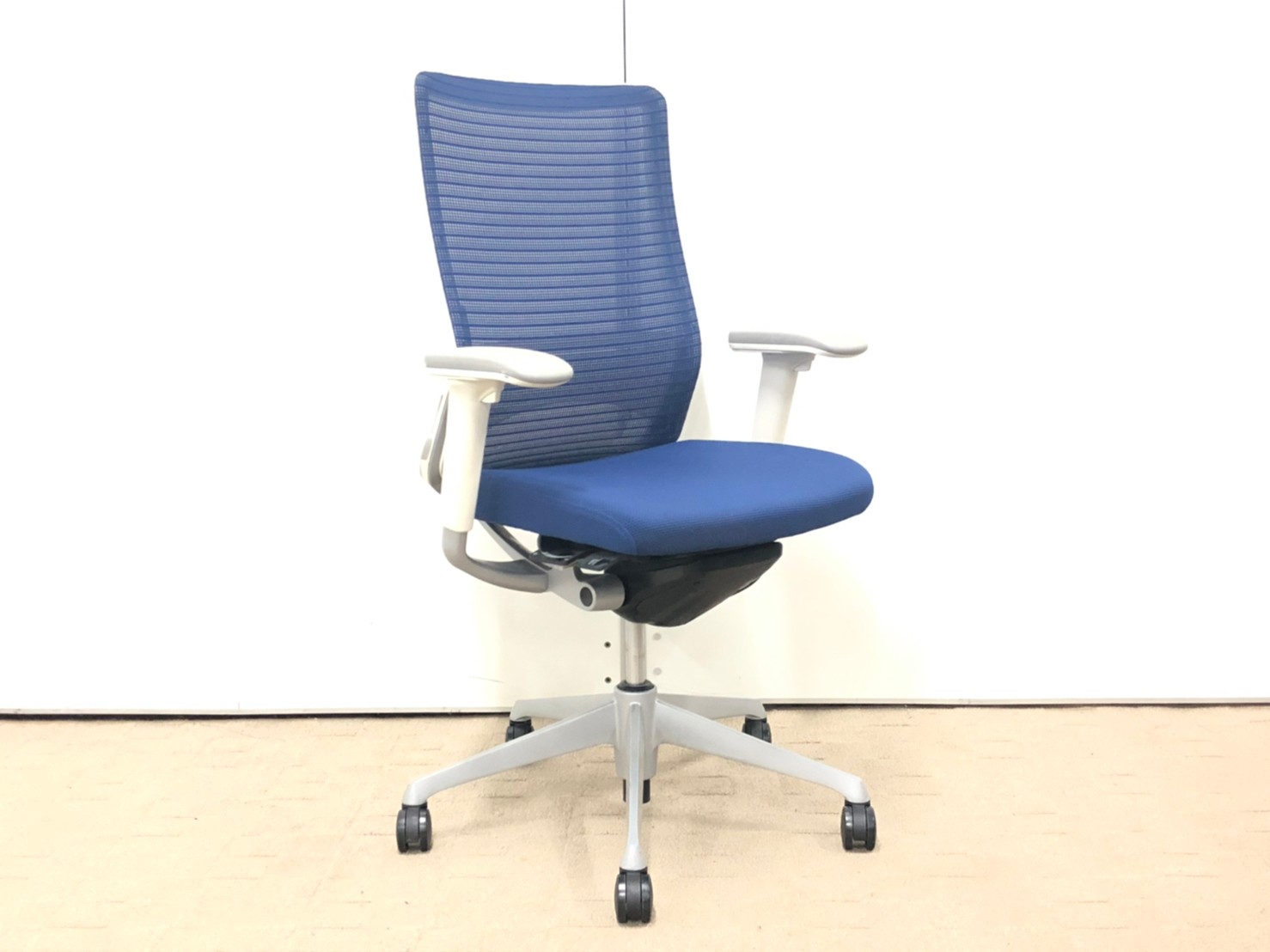 【在庫入替セール】【5脚入荷】【どんな空間にも調和するデザインと最上級の操作性!背面メッシュで通気性抜群!】■オカムラ(okamura)製 コーラル (Choral) 肘付ハイバック ■ミディアムブルー ■メッシュ背面 ■可動肘 ■ハンガー付【K】【T8】