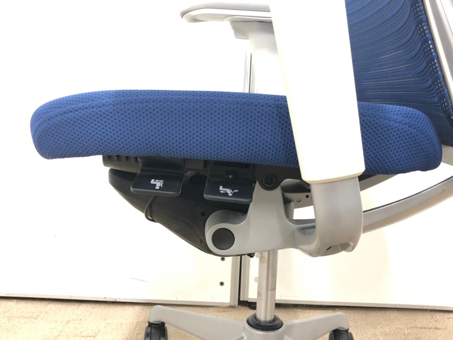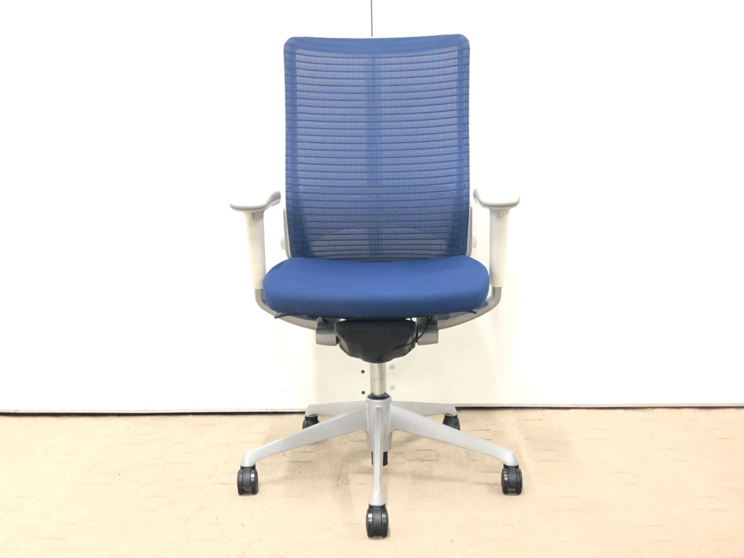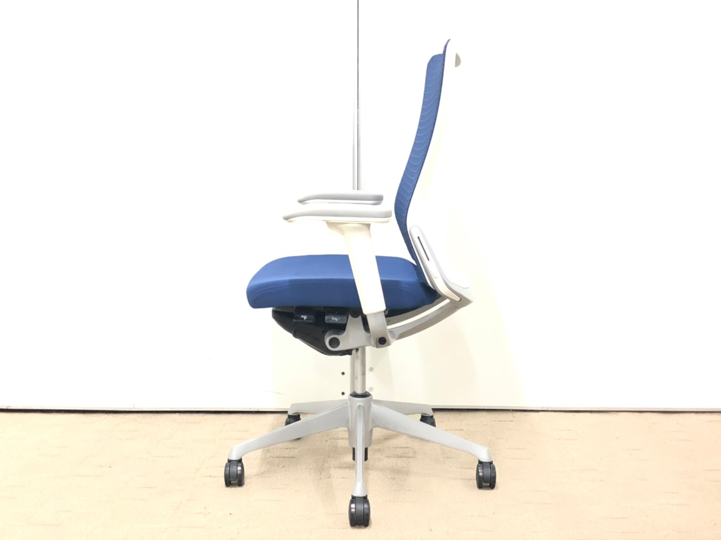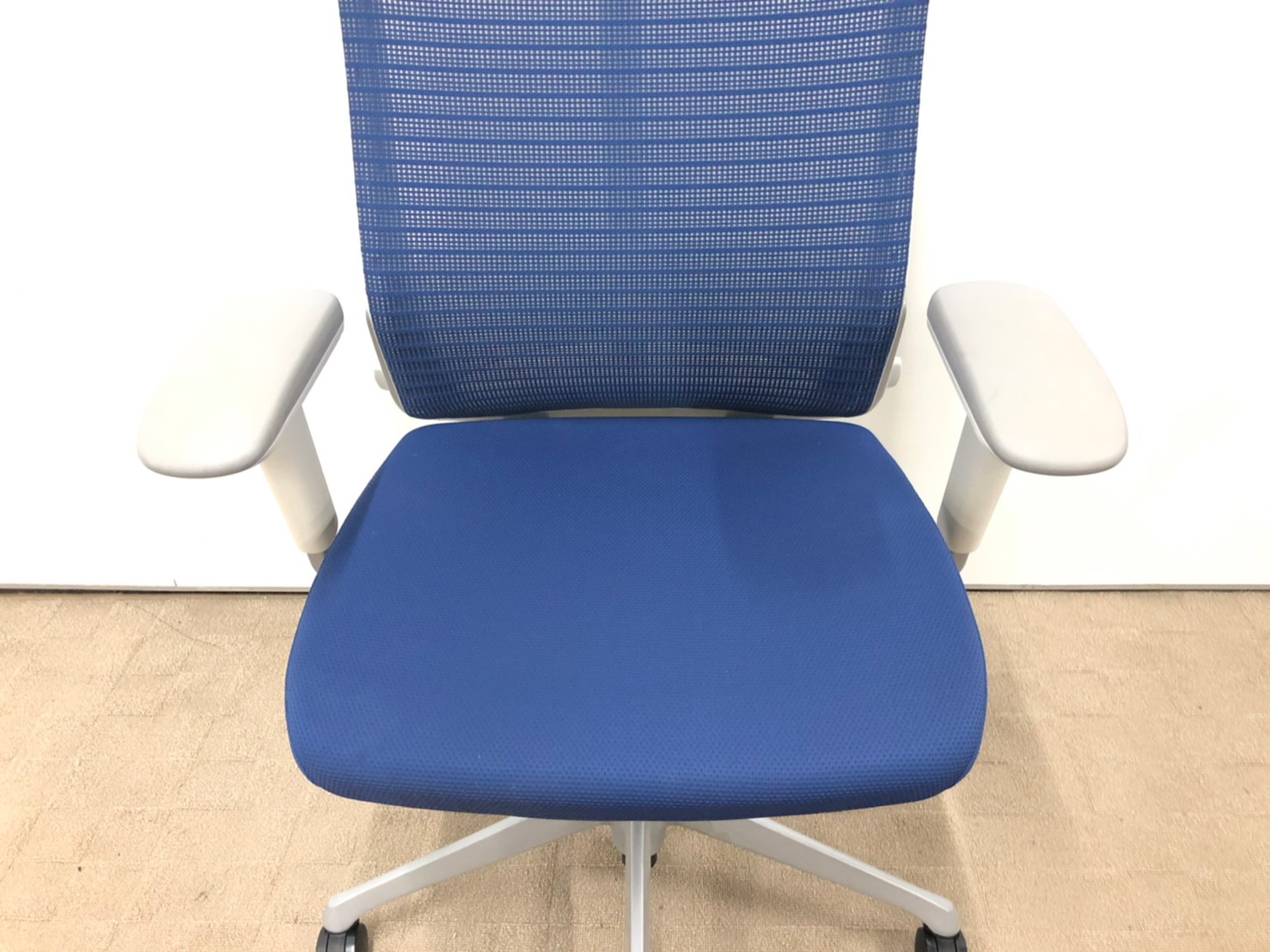 【在庫入替セール】【5脚入荷】【どんな空間にも調和するデザインと最上級の操作性!背面メッシュで通気性抜群!】■オカムラ(okamura)製 コーラル (Choral) 肘付ハイバック ■ミディアムブルー ■メッシュ背面 ■可動肘 ■ハンガー付【K】【T8】