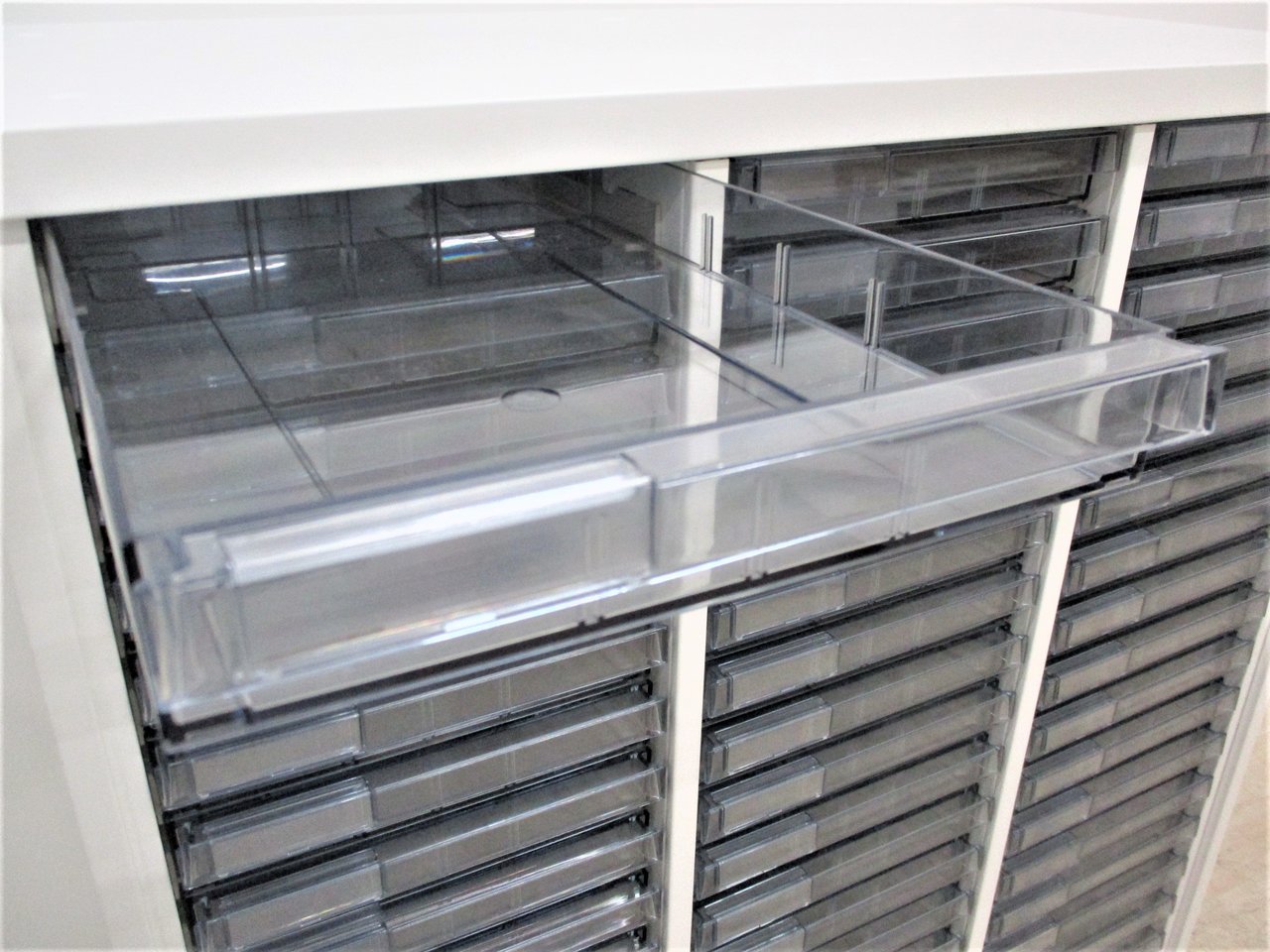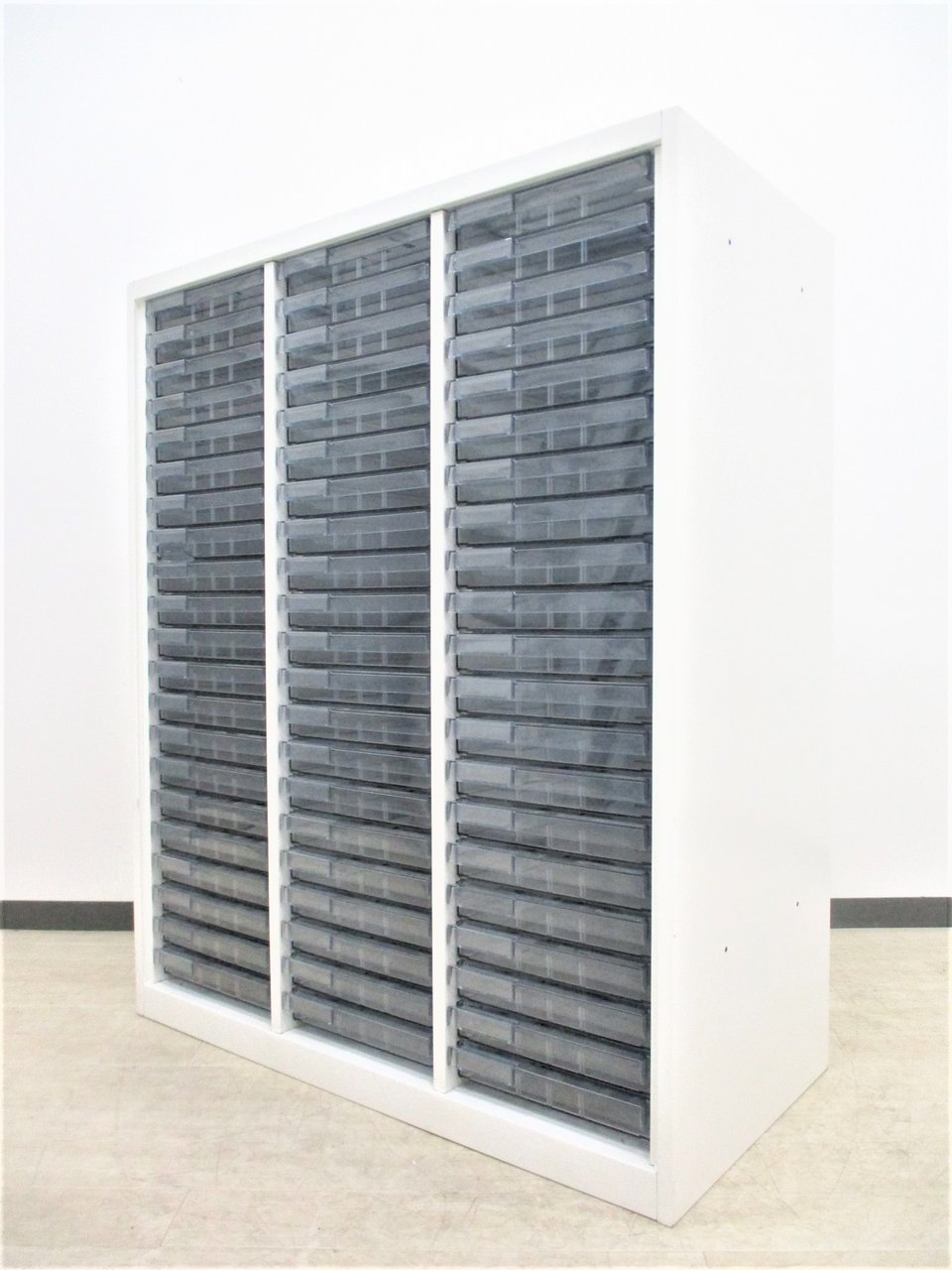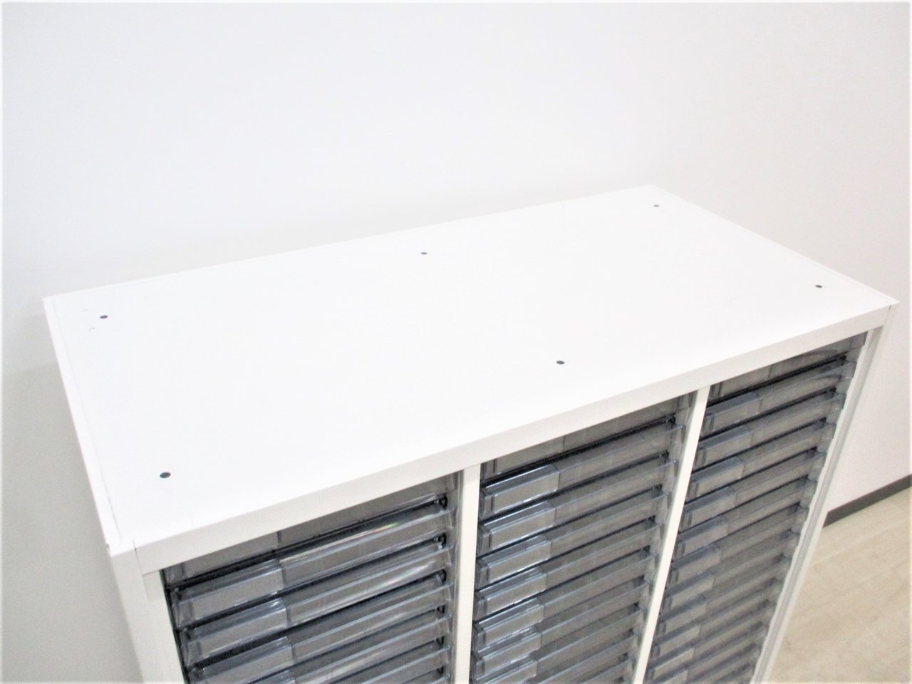 ★オカムラ製 レクトライ ホワイト 3列x16段 浅型x11段/深型x5段混在 W900xD450xH1150サイズ 天板付 クリスタルトレーキャビネット クリスタルトレイ!!