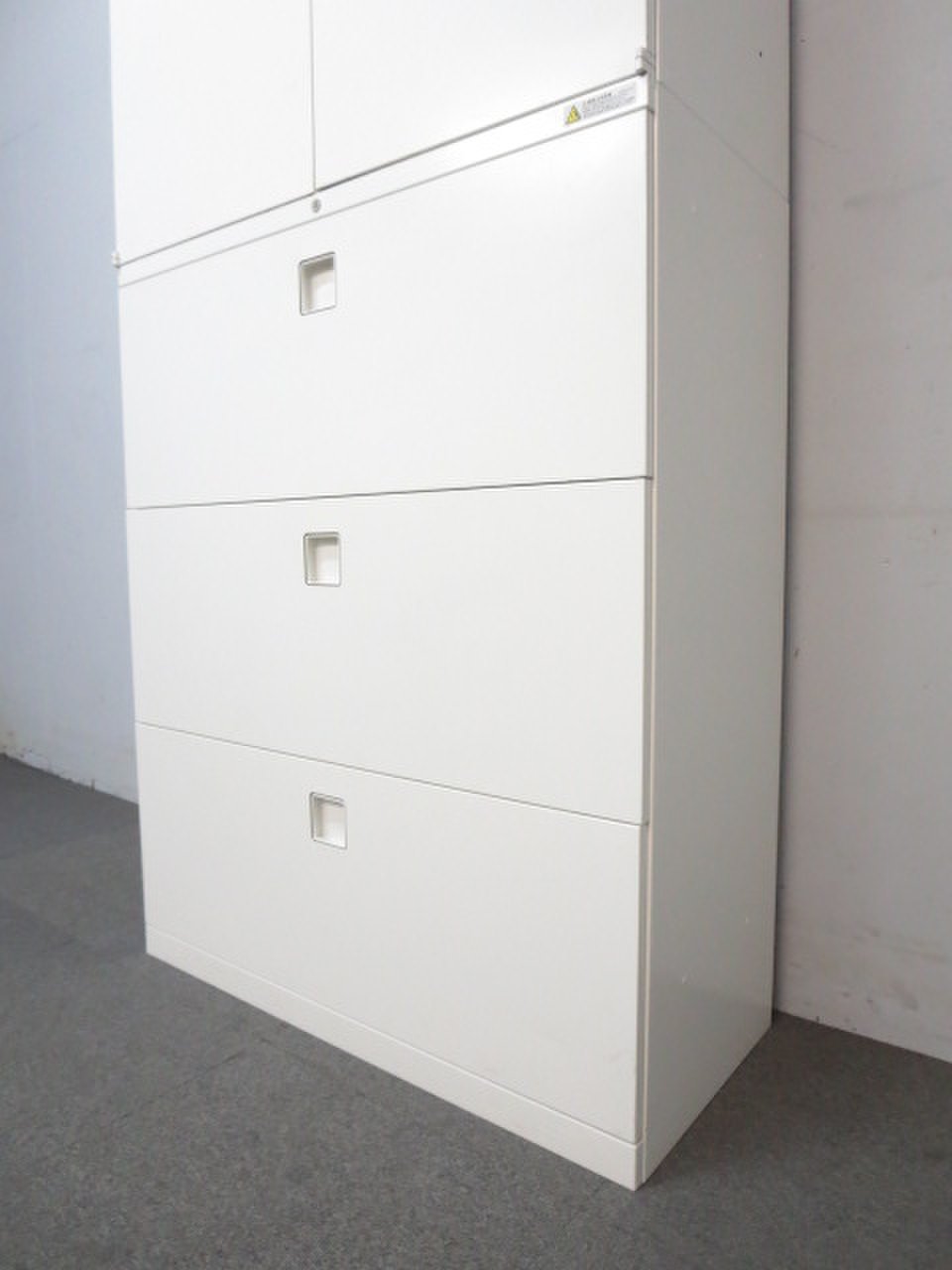 - 一部不具合ありそ引出の開閉不可、施錠不可、棚板無しといったの書庫の本来の効用を果たすための機能以外の一部が使用不可(例、扉、引出の開閉がしづらいなどがある。 )