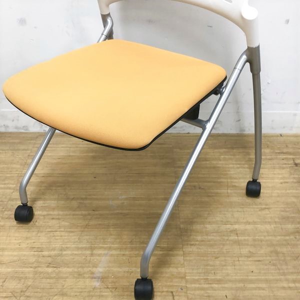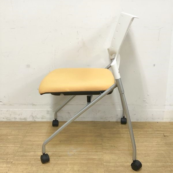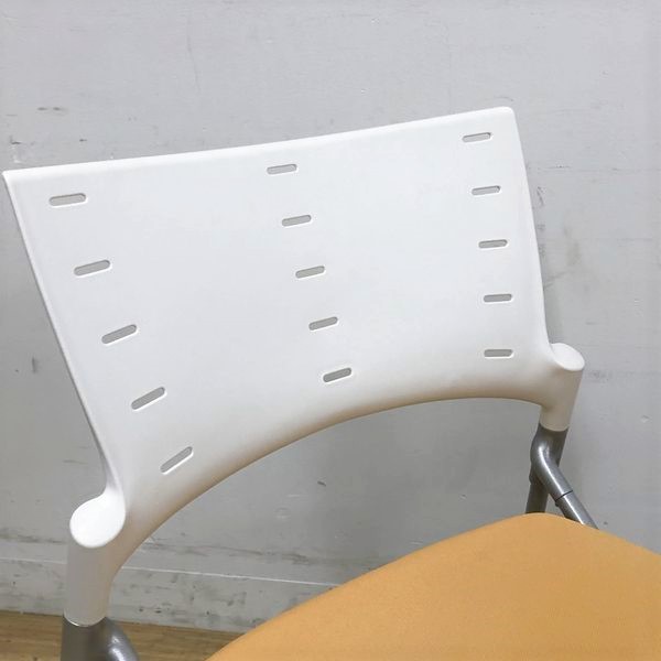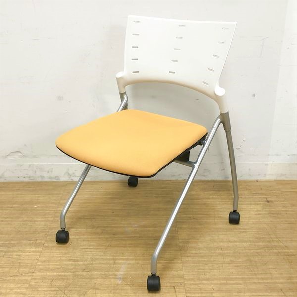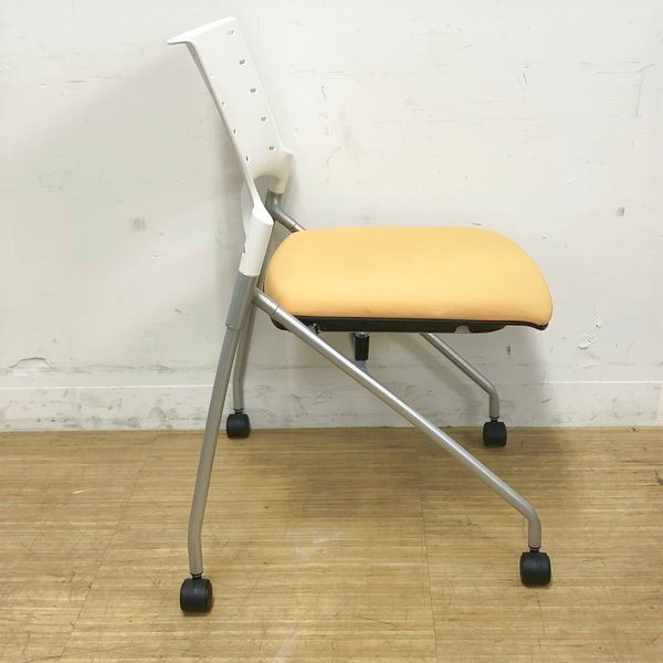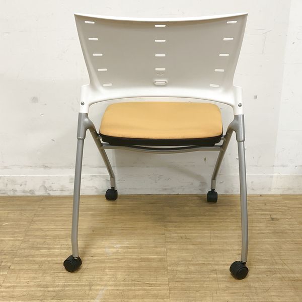 イトーキ マノス ネスティングチェア パンプキンイエロー×ホワイトシェル×シルバー脚 背パッドなしタイプ- 名古屋千種店