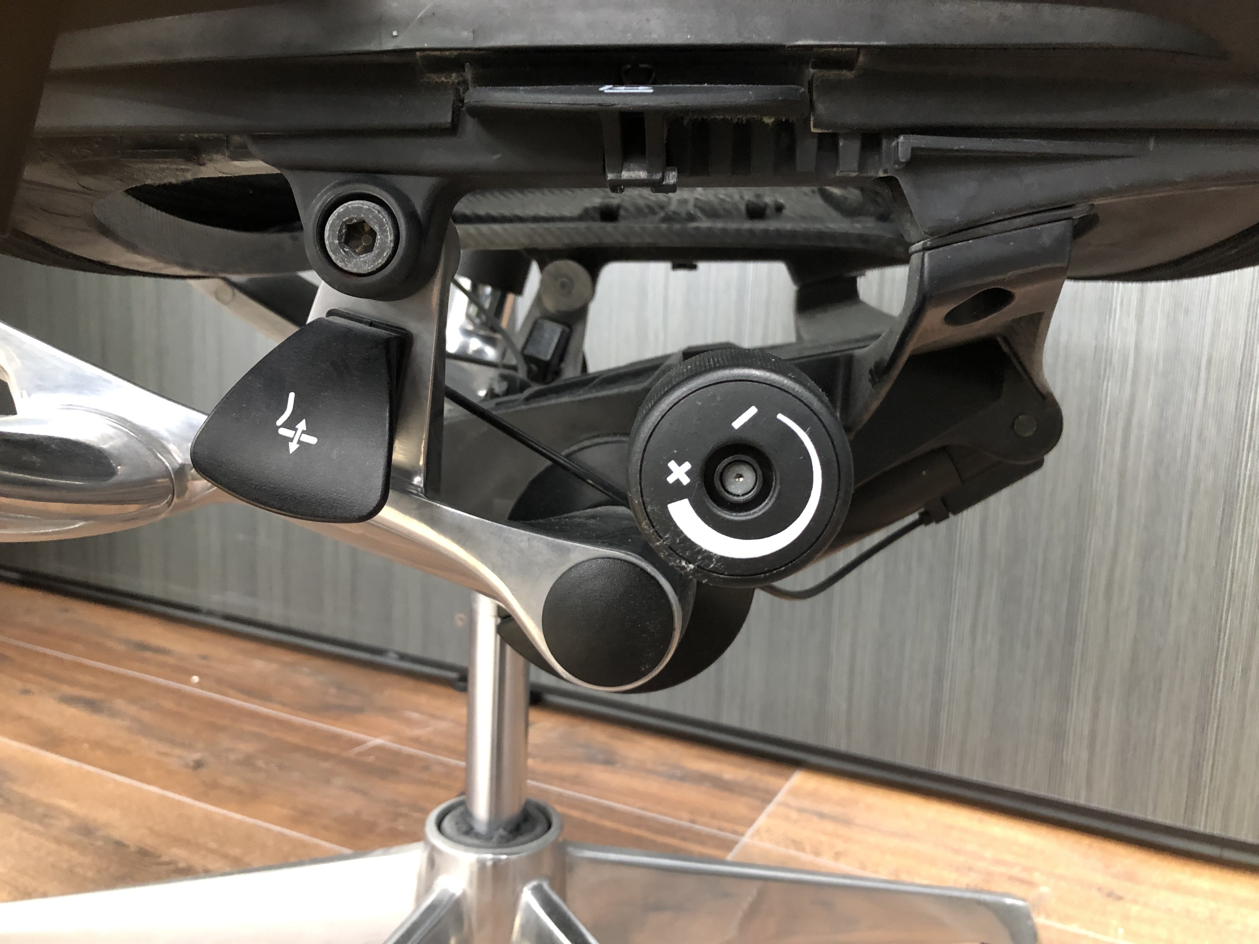 強弱やお好みの角度での固定が可能。調節するレバーも座った際に届く位置に付いているので簡単に調節が可能です。
