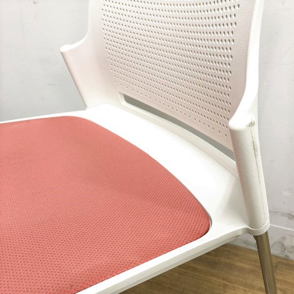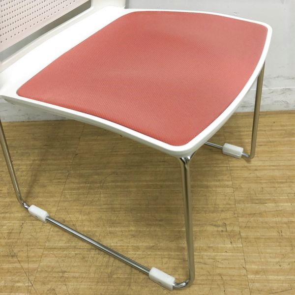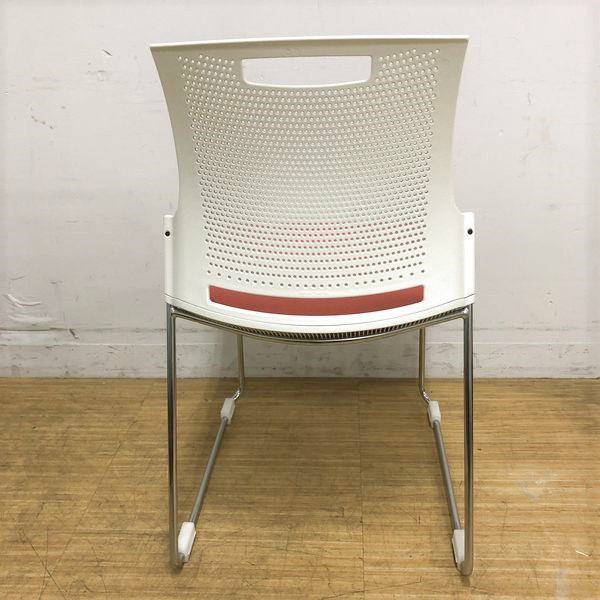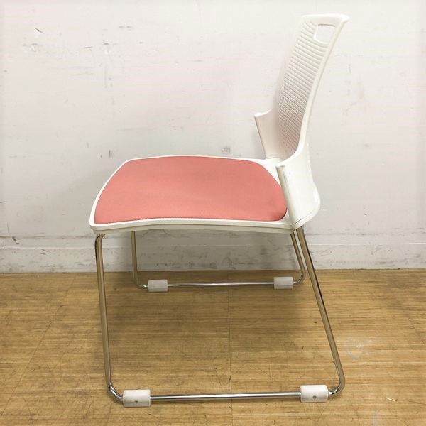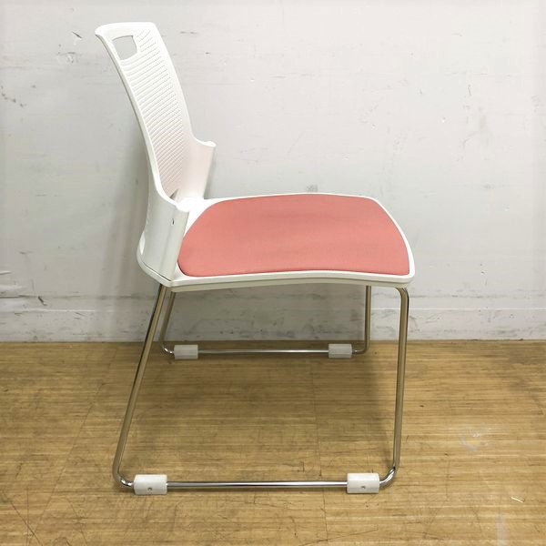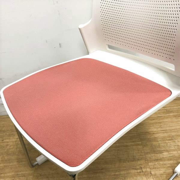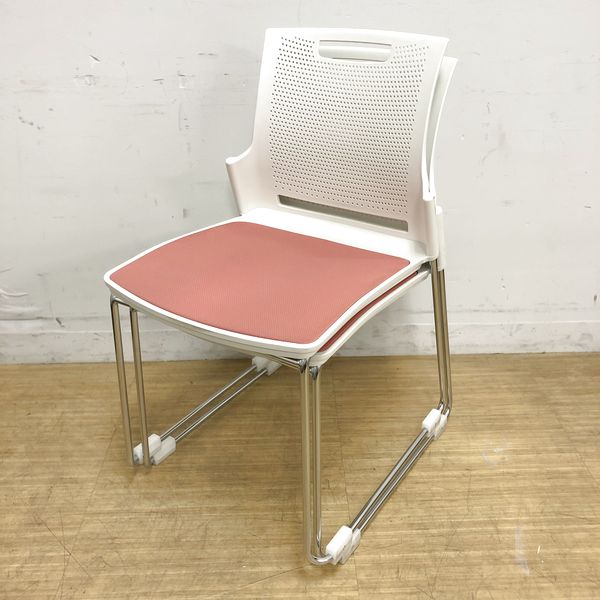 スタッキングチェア オカムラ スカラールフト 背:ホワイト 座:ピーチ 座パッド付 オフィス内のスペースの有効活用に- 名古屋千種店