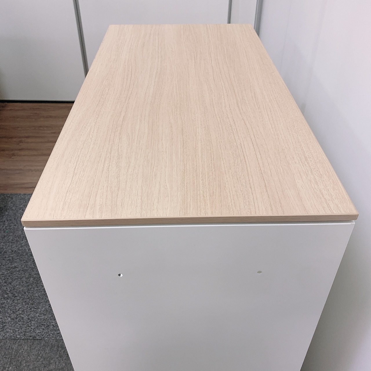 【オフィスの書類をスッキリ整理! 扉の無いタイプなので資料探しがラクラク!】■オカムラ(okamura)製 レクトライン(Rectline)シリーズ オープン書庫 ローキャビネット ■色:ホワイト ※扉外し商品のため外し跡がございます。