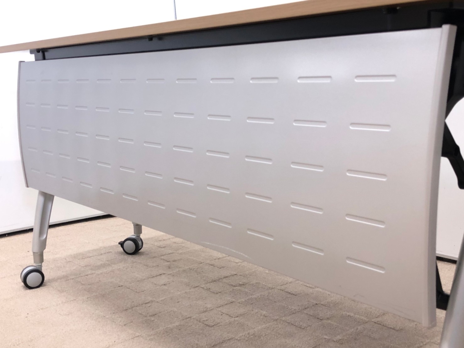 【スタイリッシュで上質なデザイン!】■イトーキ製 サイドスタックテーブル 幕板パネル付 ■W1800×D600×H700mm ファインウォールナット 木目柄天板【在庫入替セール品!(本在庫限定価格)】