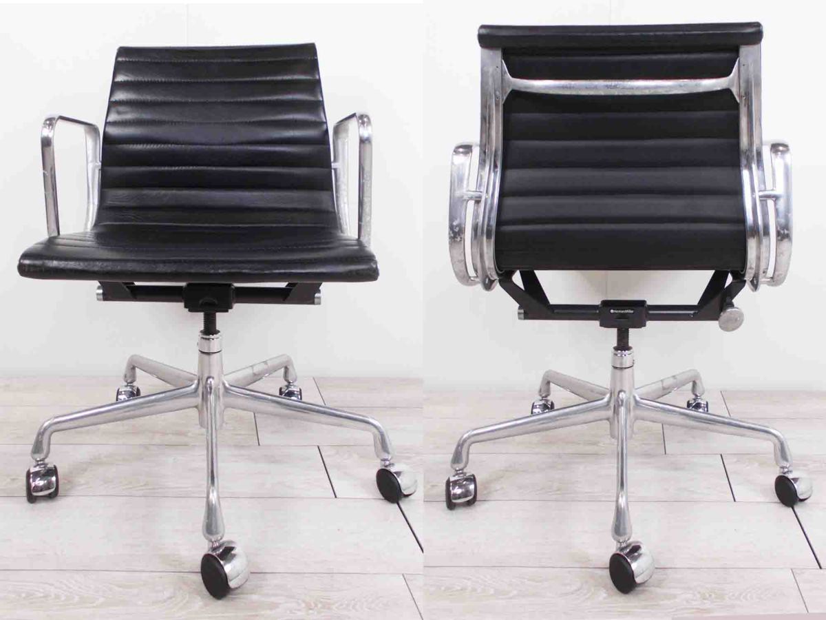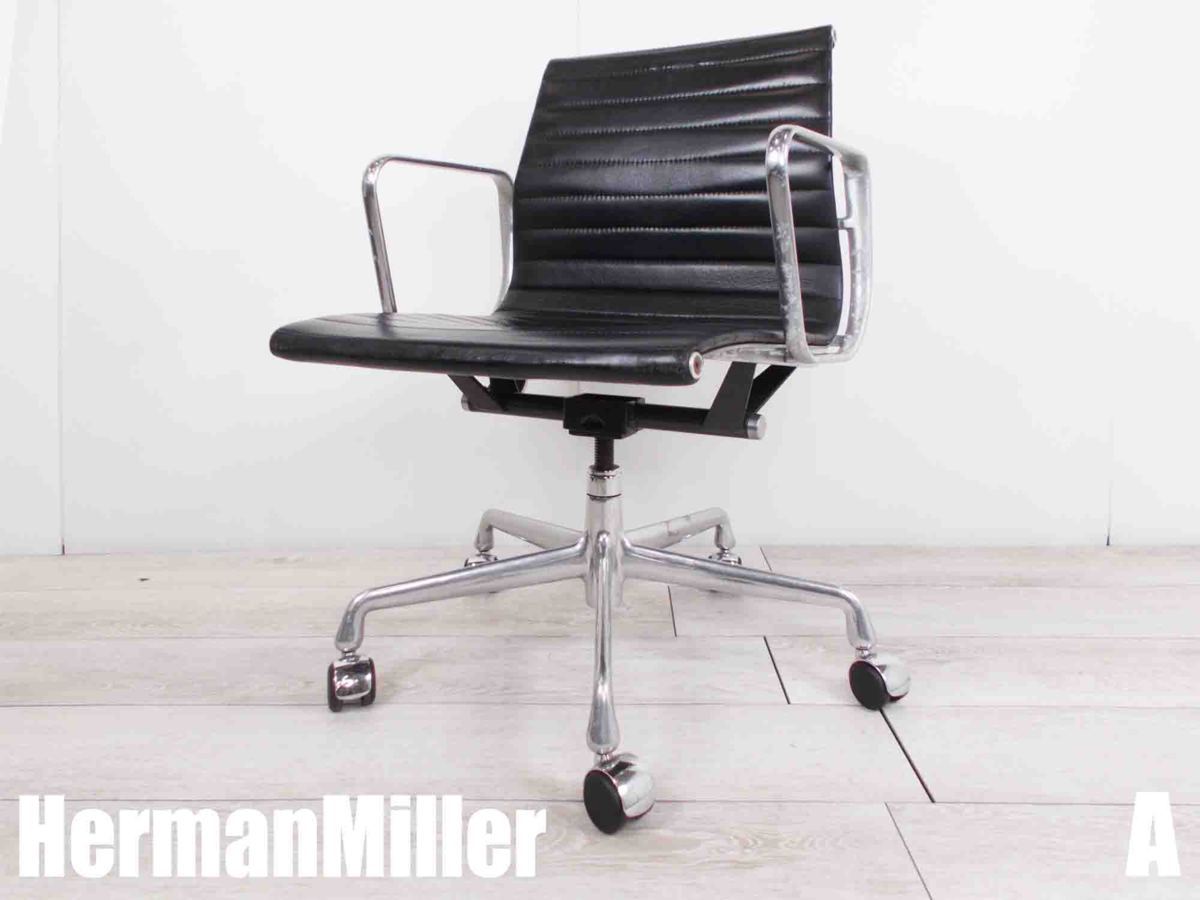 2A)HermanMiller/ハーマンミラー イームズ アルミナムチェア ローバック ブラック 本革- デザイナーズ家具センター